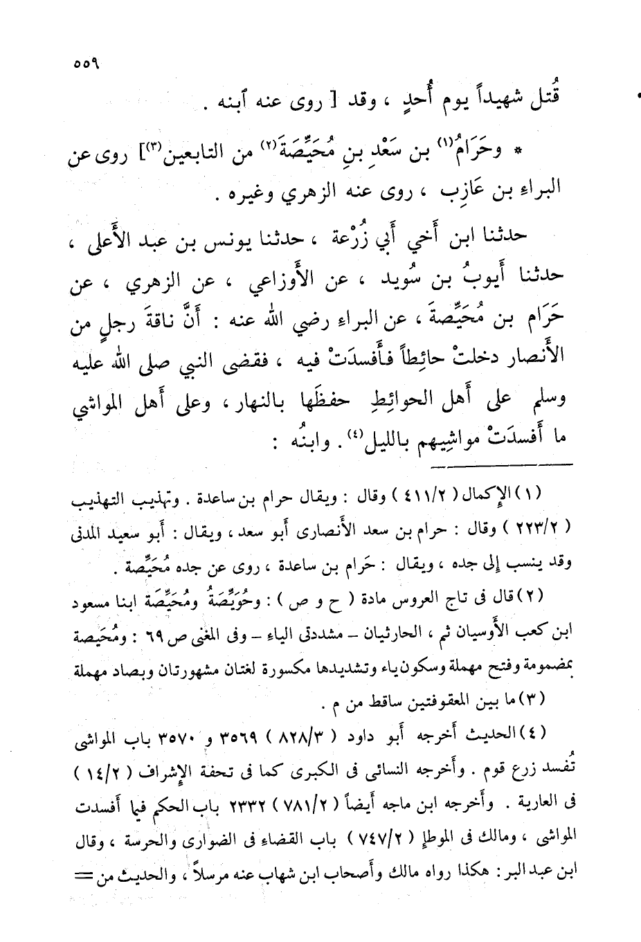 وحَرَامُ بْن سعد بْن مُحَيِّصَةَ من التَّابِعين روى عَن البراءِ بْن عَازِب روى عَنْهُ الزُّهْرِيّ وَغَيره