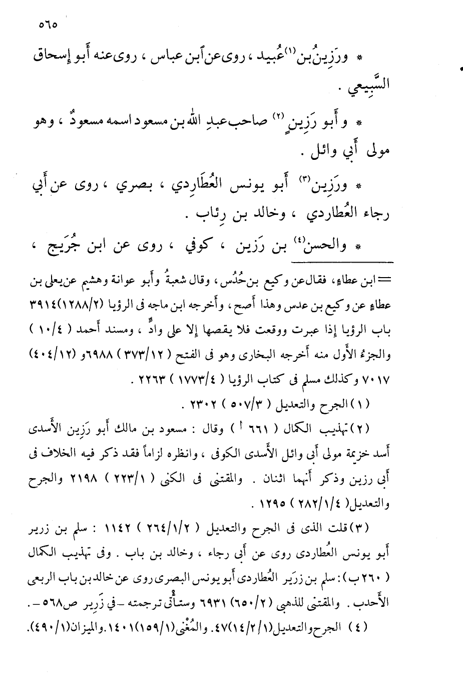 ورَزينُ بْن عُبَيْد روى عَن ابْن عَبَّاس روى عَنْهُ أَبو إِسْحَاق السبيعِي