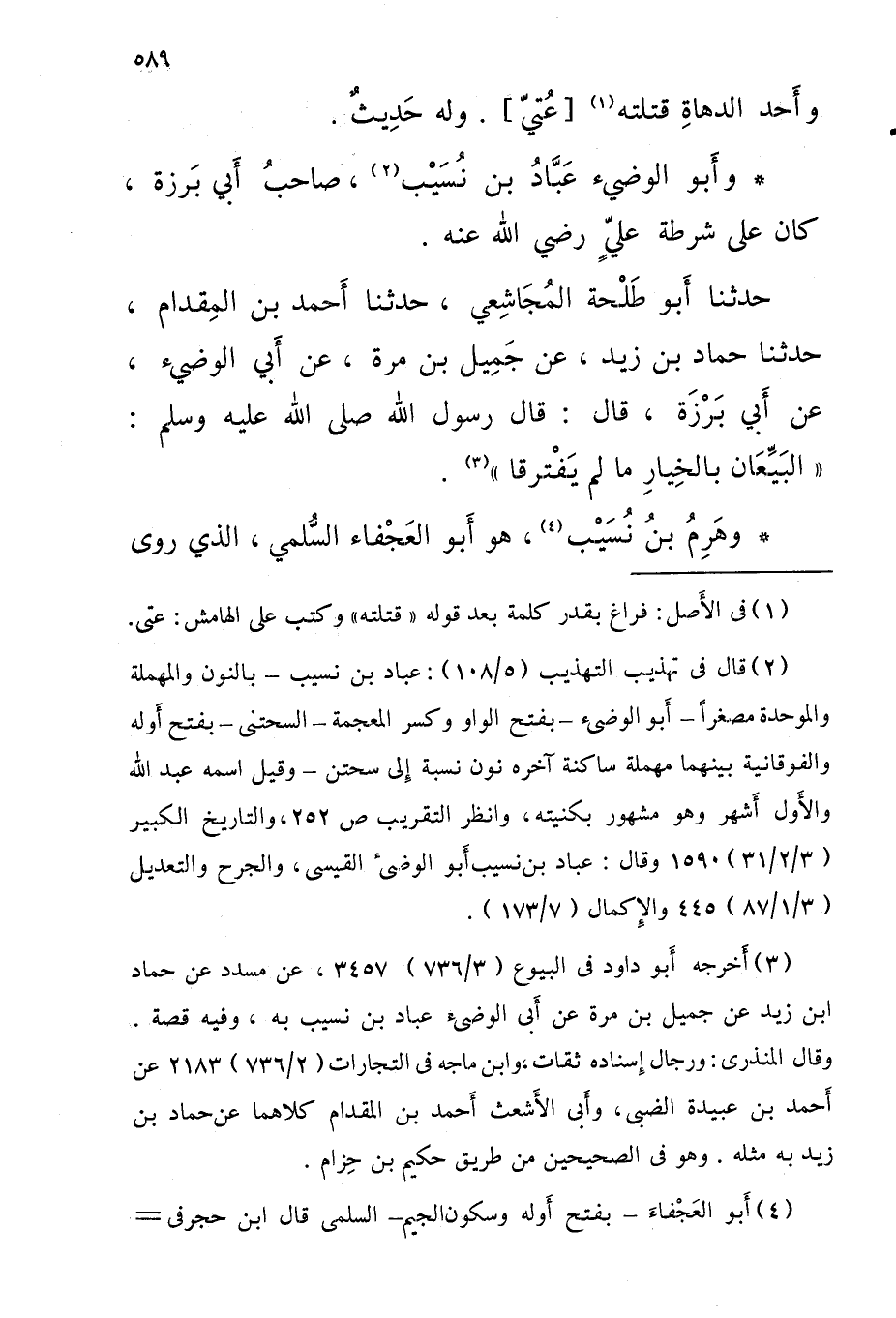 وَأَبُو الوضيء عباد بْن نسيب صَاحب أَبِي بَرزَة كَانَ عَلَى شرطة عليٍ رَضِيَ اللَّه عَنْهُ