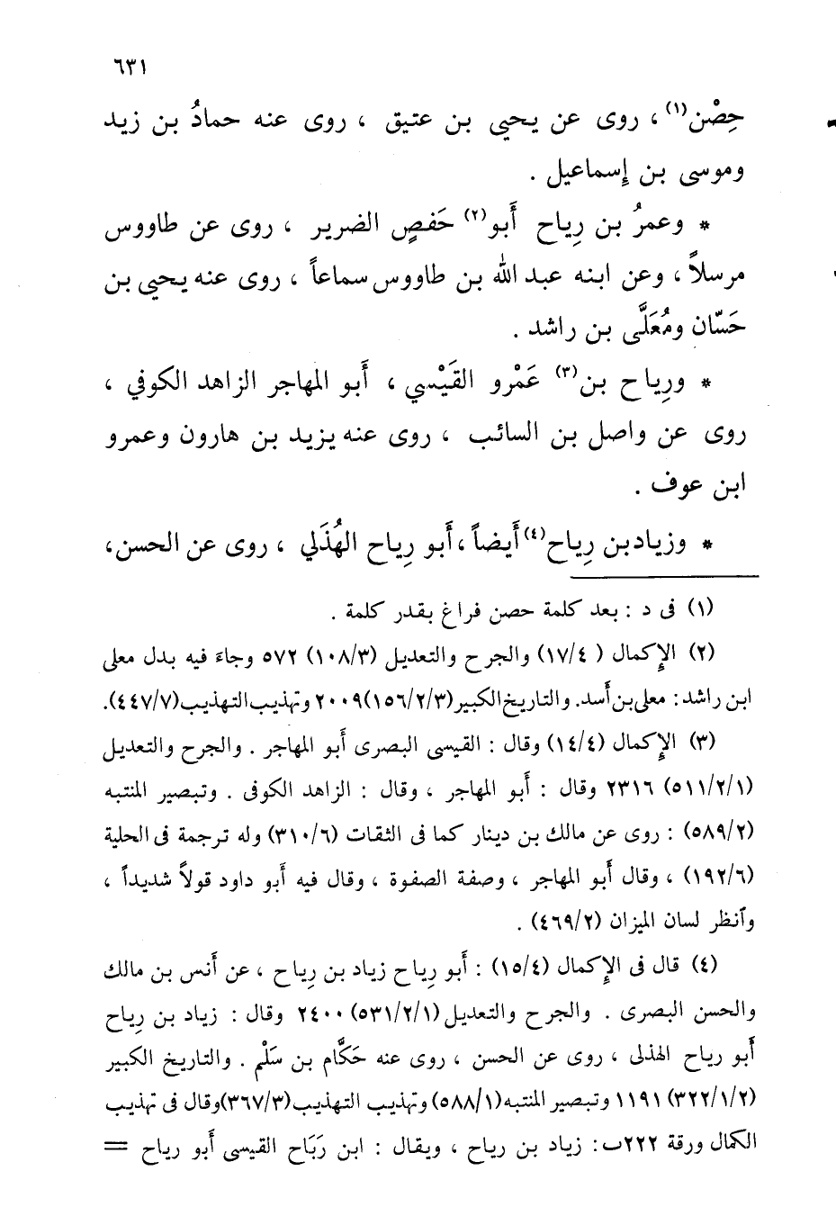 وعمرُ بْن رِياح أَبُو حَفصٍ الضَّرِير روى عَن طَاوُوس مُرْسلا وَعَن ابْنه عَبْد اللَّه بن طَاوُوس سَمَاعا روى عَنْهُ يحيى بْن حَسّان ومُعَلَّى بْن رَاشد