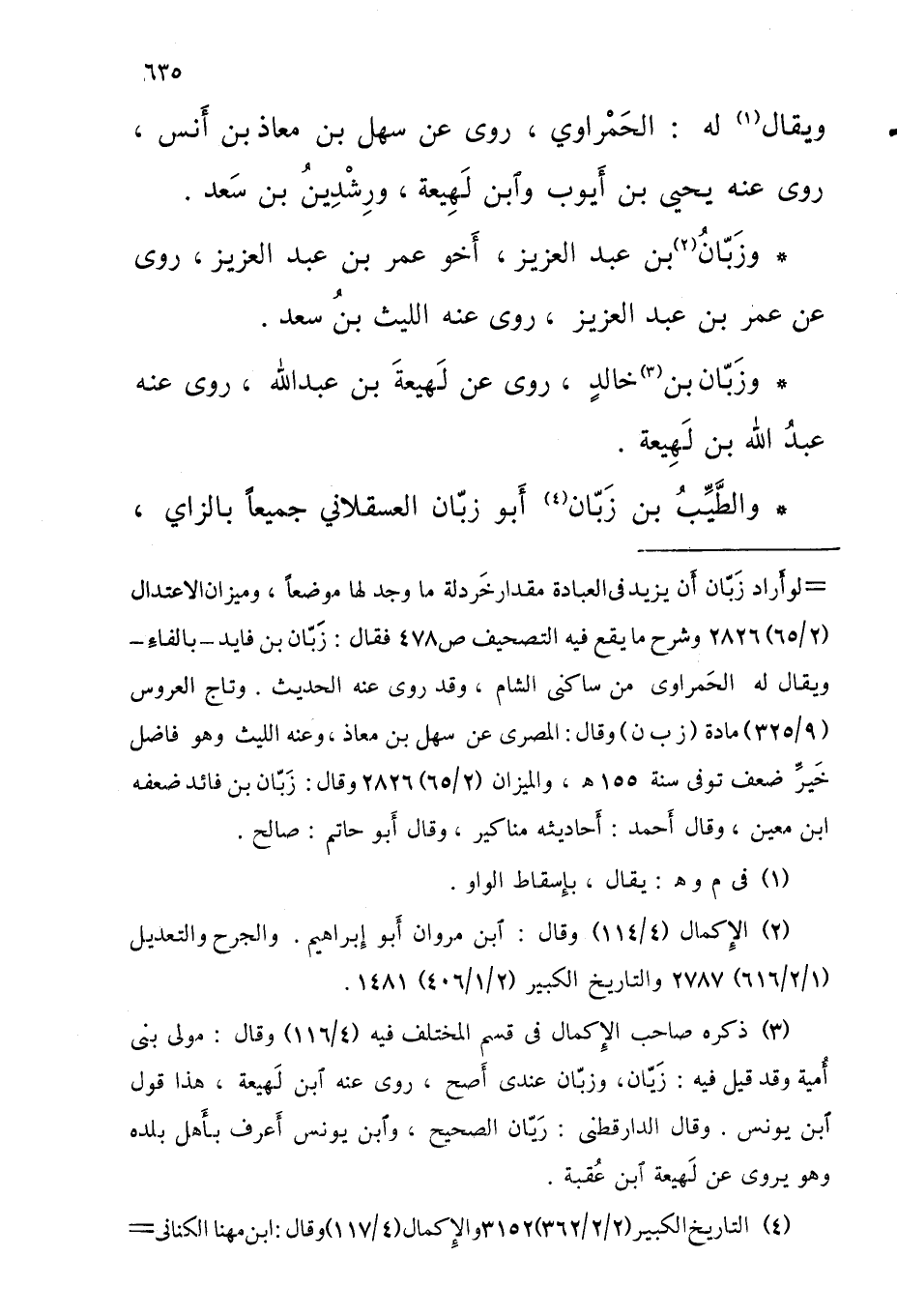 وزَبّان بْن خالدٍ روى عَن لَهِيعَة بْن عَبْد اللَّه روى عَنْهُ عَبْد اللَّه بْن لَهِيعَة
