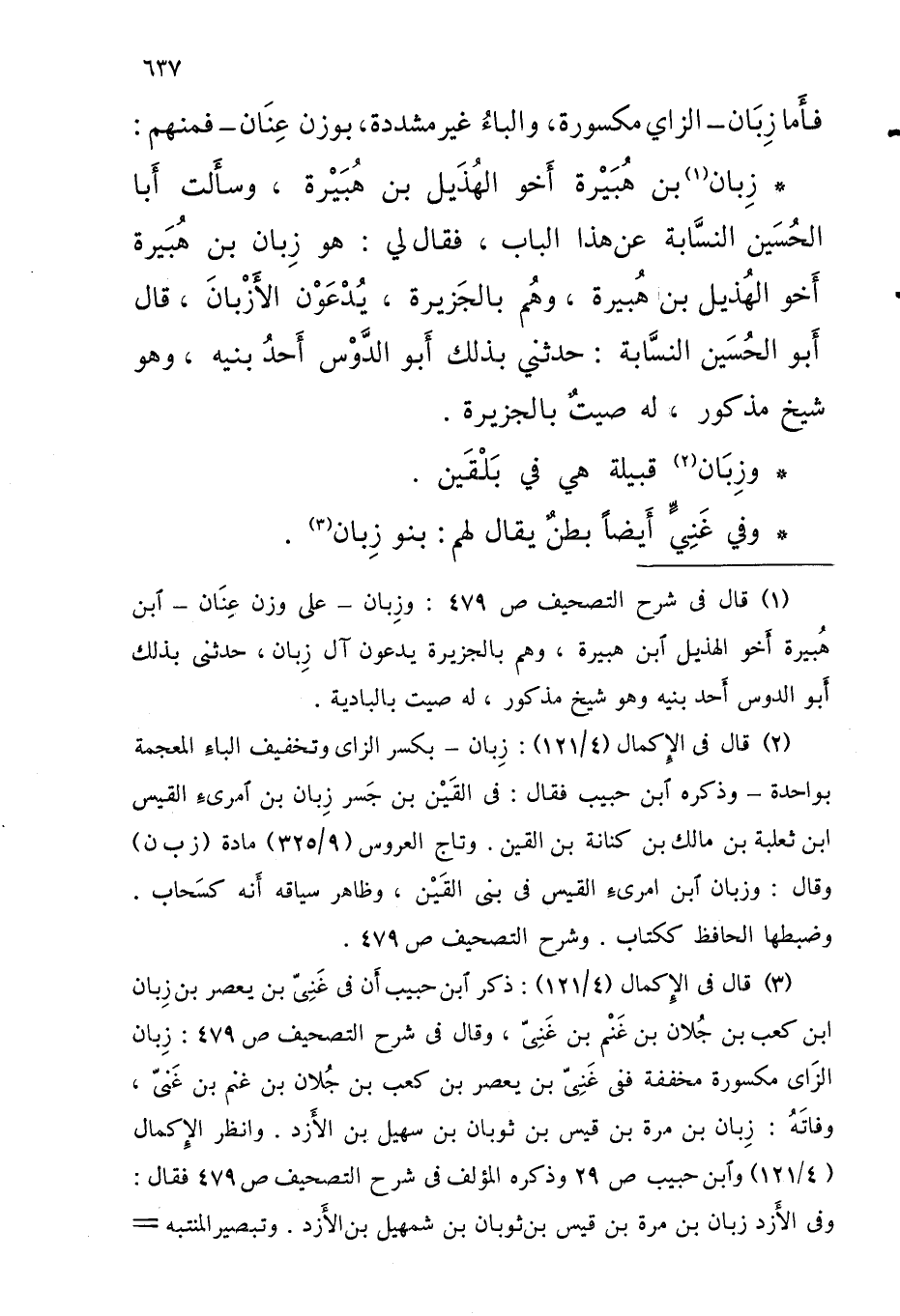 زِبان بْن هُبَيْرة أَخو الهُذَيل بْن هُبَيْرَة وَسَأَلت أَبَا الْحُسَيْن النسَّابة عَن هَذَا الْبَاب فَقَالَ لي هُوَ زِبان بْن هُبَيْرَة أَخُو الْهُذيْل بْن هُبَيْرَة وهم بالجزيرة يدعونَ الأَزْبان قالَ أَبُو الْحُسَيْن النسَّابة حَدَّثَنِي بِذَلِك أَبو الدَّوْس أَحدُ بنيه وَهُوَ شيخ مَذْكُور لَهُ صيتٌ بالجزيرة