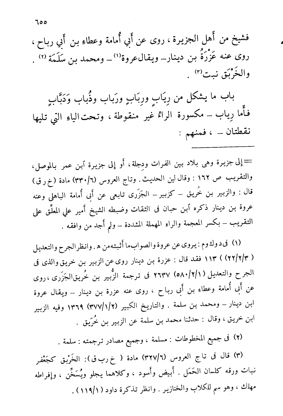 - بَابُ مَا يشكل من رِيَابٍ ورِبابٍ ورِبابٍ وذُباب وَدَبَّابٍ فأَما رِياب مَكْسُورَة الراءُ غير منقوطة وَتَحْت الياءِ الَّتِي تَلِيهَا نقطتان فَمنهمْ