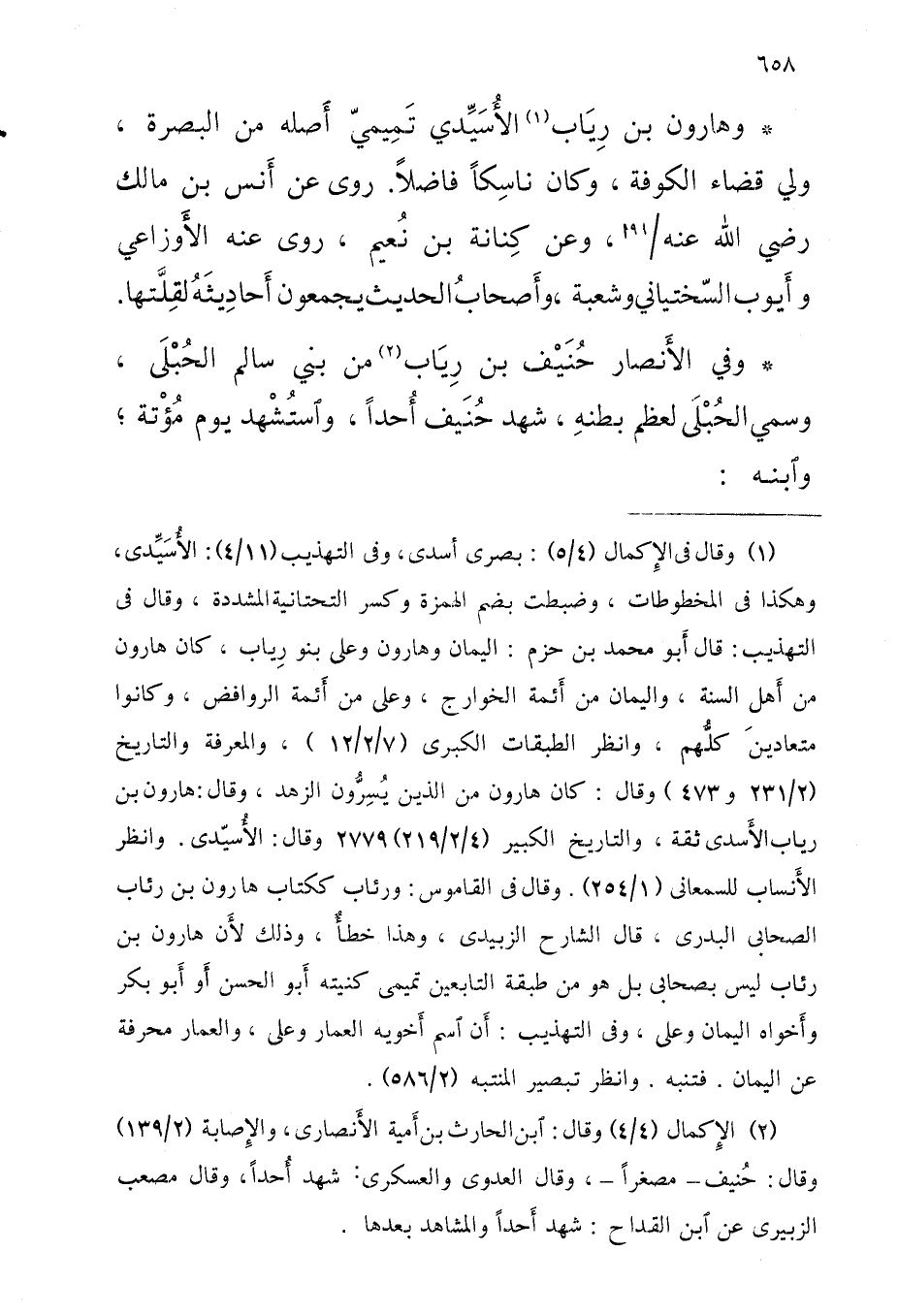 وَهَارُون بْن رياب الأُسَيِّدي تميمي أَصله من الْبَصْرَة ولي قَضَاء الْكُوفَة وَكَانَ ناسِكًا فَاضلا روى عَنْ أَنَسِ بْنِ مَالِكٍ رَضِيَ الله عَنهُ 91 أوَعَن كنَانَة بْن نُعيم روى عَنْهُ الْأَوْزَاعِيّ وَأَيوب السّخْتِيَانِيّ وَشعْبَة وَأَصْحَاب الحَدِيث يجمعُونَ أَحَادِيثه لقلتهَا