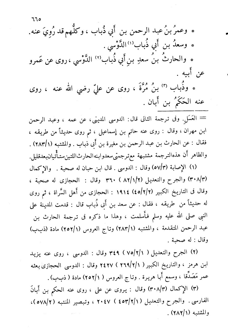 وذُباب بنُ مُرَّةَ روى عَن عَليّ رَضِيَ اللَّه عَنْهُ روى عَنْهُ الحكم بْن أَبان