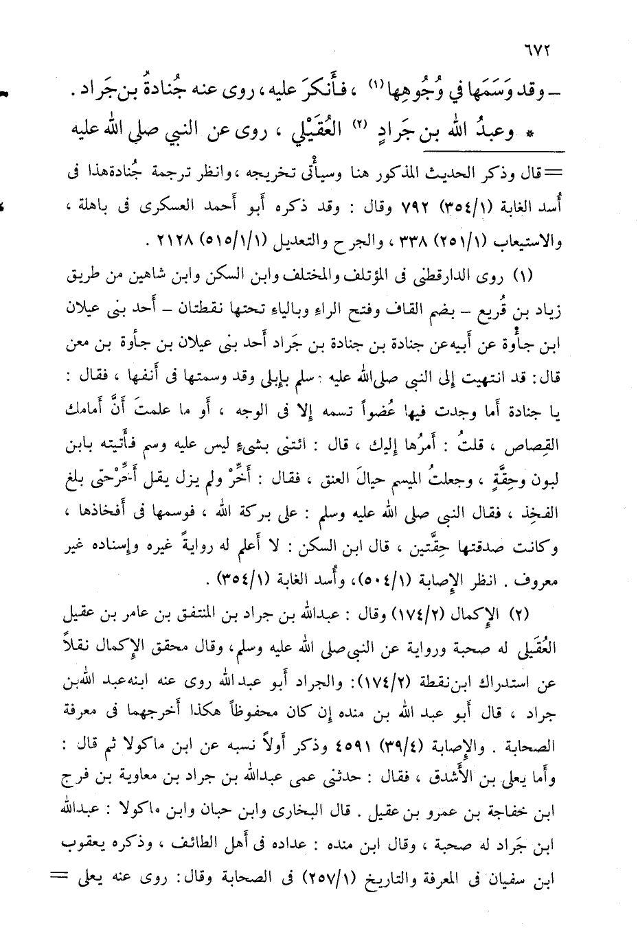 وَعبد اللَّه بْن جَرادٍ الْعقيلِيّ روى عَن النَّبِيّ صلى الله عَلَيْهِ
