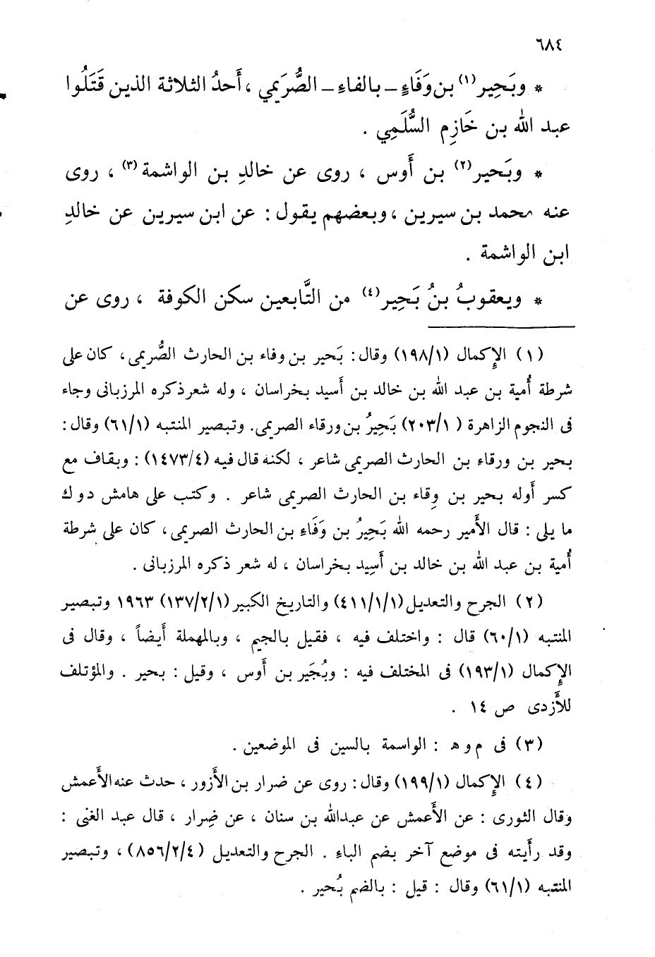 وبحير بْن وَفَاءٍ بالفاءِ الصريمي أحدُ الثَّلَاثَة الَّذين قتلُوا عَبْد اللَّه بْن خازم السُّلَمِي