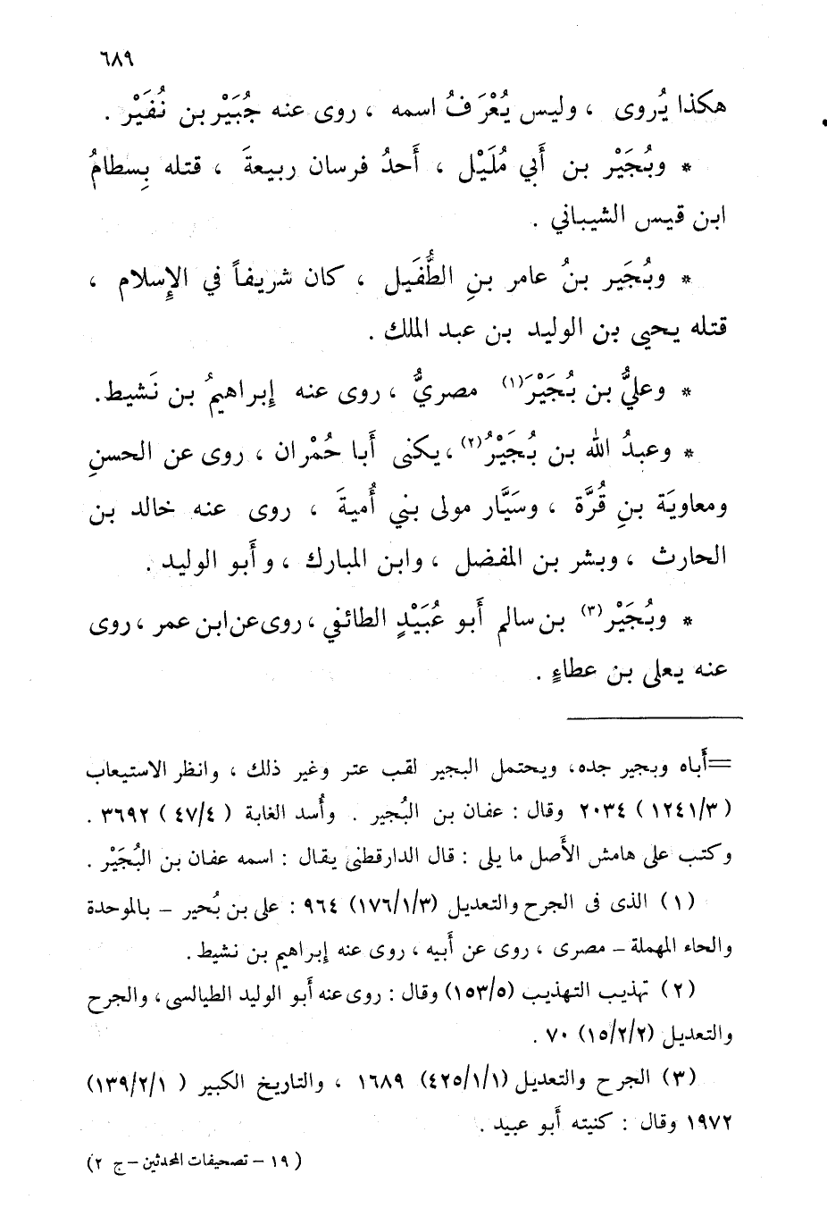 وَعبد اللَّه بْن بُجَيْرُ يُكَنَّى أَبَا حمْرَان روى عَن الْحَسَن وَمُعَاوِيَة بْن قُرَّة وسَيَّار مَوْلَى بني أُميةَ روى عَنْهُ خَالِد بْن الْحَارِث وَبشر بْن الْمفضل وَابْن الْمُبَارَك وأَبو الْوَلِيد