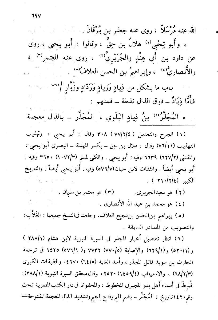 - بَابُ مَا يشكل من ذياد وَزِيَاد ورداد وزبار 95 ب فأَمَّا ذِيَادٌ فَوق الذَّال نقطة فَمنهمْ