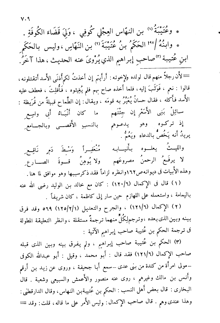 وَابْنه 97 أالحكم بْن عُتَيْبَةُ بْن النهاس وَلَيْسَ بالحكم ابْن عُتَيْبَةُ صَاحب إِبراهيم الَّذِي يُرْوى عَنْهُ الحَدِيث هَذَا آخَرُ