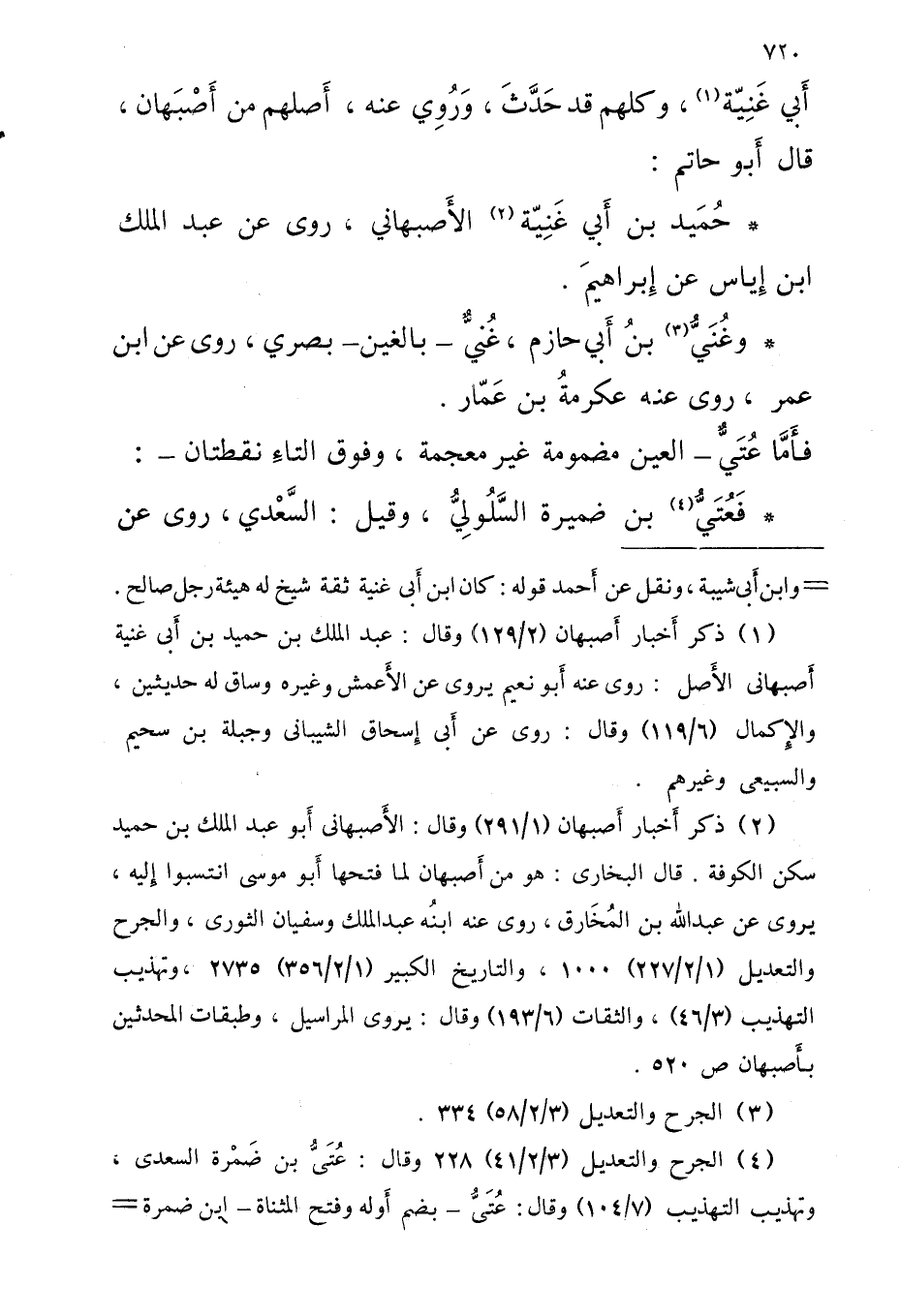 وغُنَيُّ بْنُ أَبِي حَازِم غُنيٌّ بالغين بَصرِي رَوَى عَنِ ابْنِ عُمَرَ رَوَى عَنْهُ عكرمةُ بْن عمار فأَمَّا عُتَيٌّ الْعين مَضْمُومَة غير مُعْجمَة وَفَوق التاءِ نقطتان