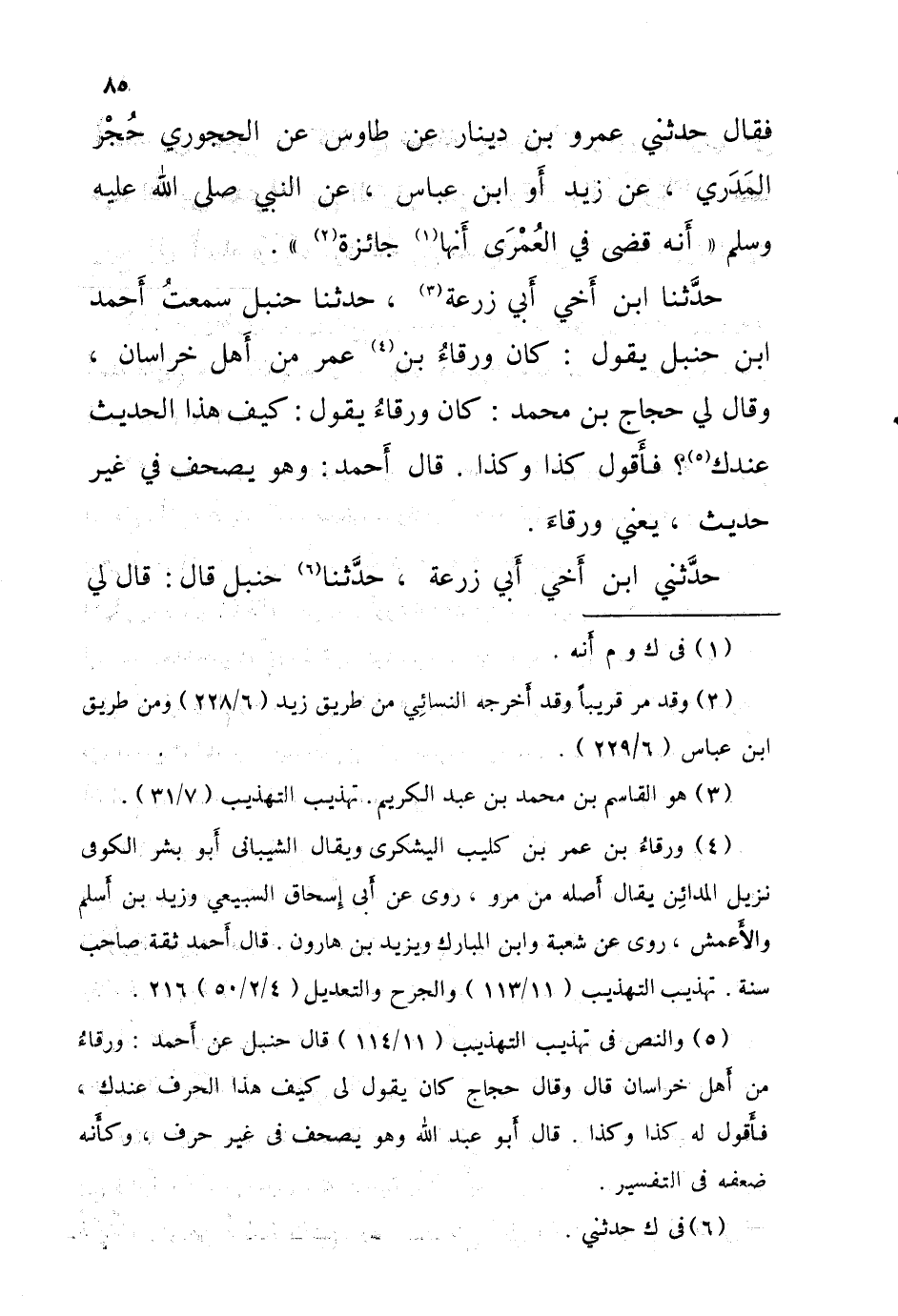 حَدَّثَنَا ابْنُ أَخِي أَبِي زرْعَة حَدثنَا حَنْبَل سَمِعت أَحْمد ابْن حَنْبَلٌ يَقُولُ كَانَ وَرْقَاءُ بْنُ عُمَرَ مِنْ أَهْلِ خُرَاسَانَ وَقَالَ لِي حَجَّاجُ بْنُ مُحَمَّدٍ كَانَ وَرْقَاءُ يَقُولُ كَيْفَ هَذَا الْحَدِيثُ عِنْدَكَ فَأَقُولُ كَذَا وَكَذَا قَالَ أَحْمَدُ وَهُوَ يُصَحِّفُ فِي غَيْرِ حَدِيثٍ يَعْنِي وَرْقَاءَ
