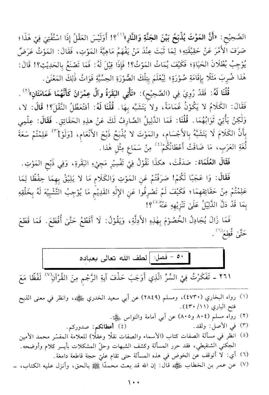 5 انظر في مسألة الصفات كتاب الأسماء والصفات نقلًا وعقلًا للعلامة المفسر محمد الأمين الجكني الشنقيطي؛ فقد حرر المسألة وكشف الشبهات، وحل المشكلات بأيسر كلام وأوضحه.