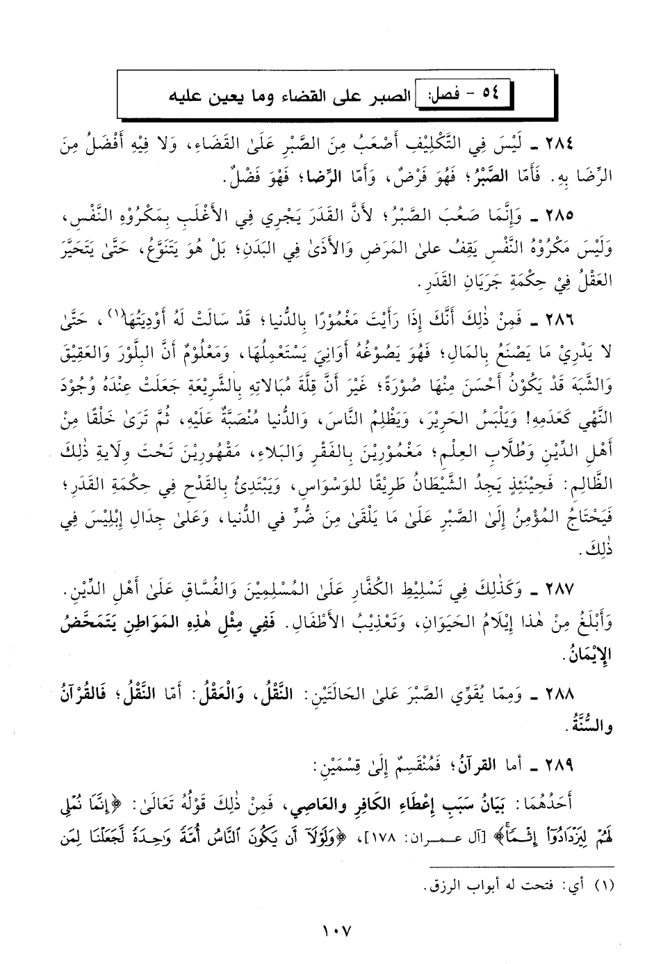 288- ومما يقوي الصبر على الحالتين: النقل، والعقل: أما النقل، فالقرآن والسنة.
