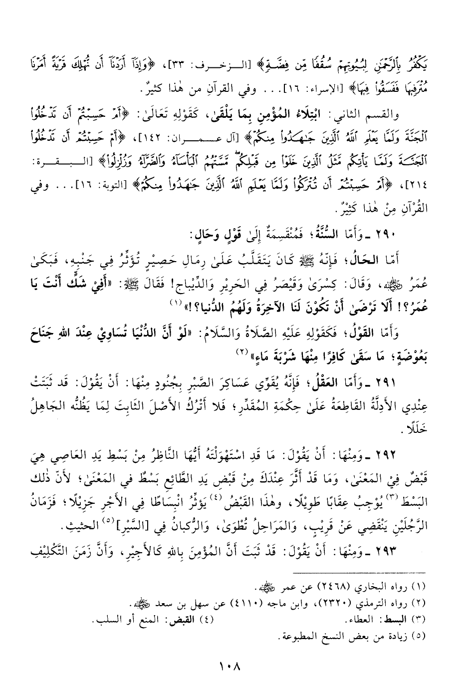 290- وأما السنة، فمنقسمة إلى قول وحال: