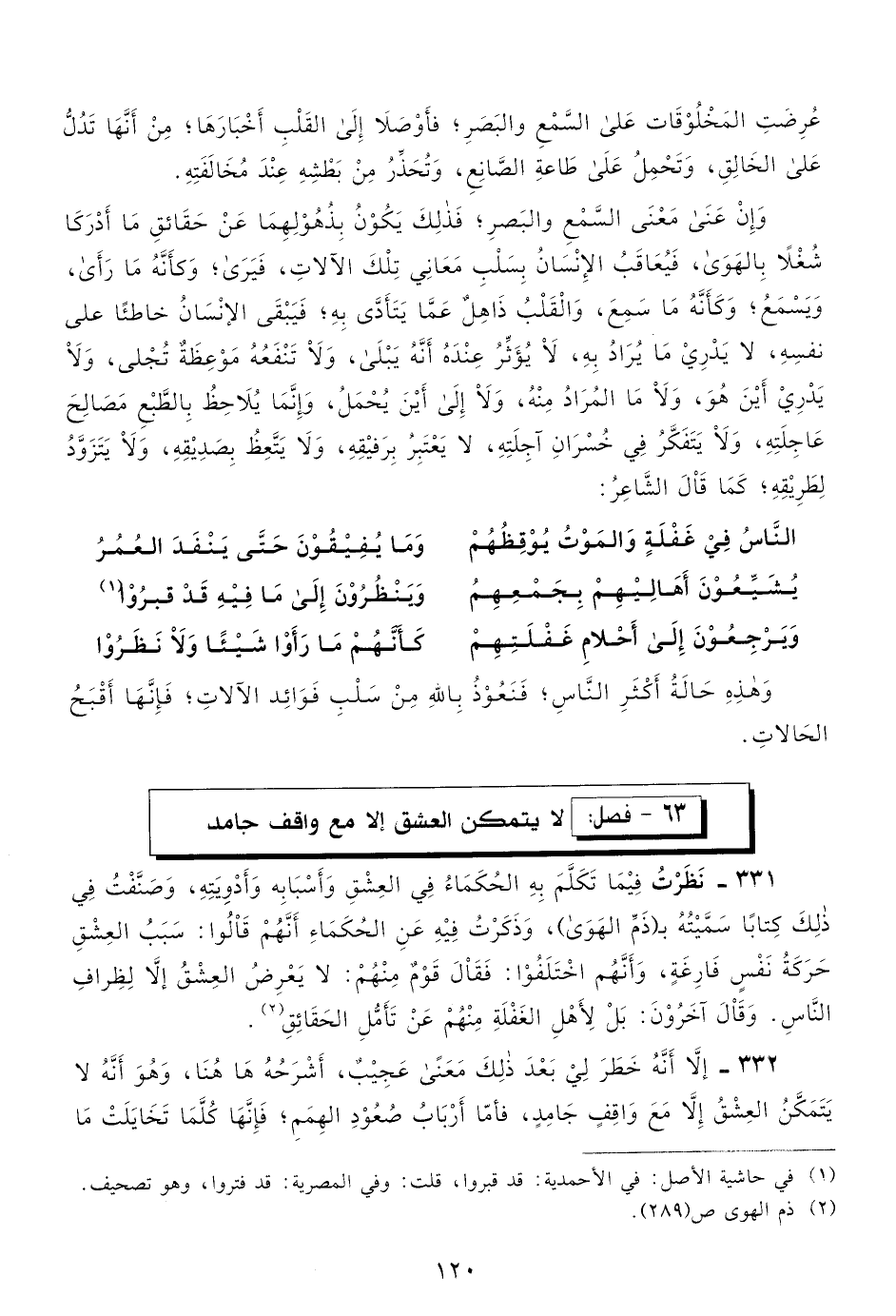63- فصل: لا يتمكن العشق إلا مع واقف جامد