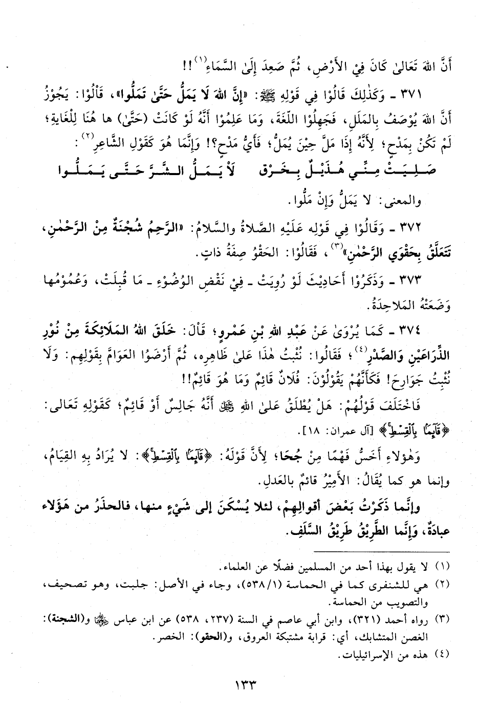 372- وقالوا في قوله عليه الصلاة والسلام: "الرحم شجنه من الرحمن، تتعلق بحقوي الرحمن"3، فقالوا: الحَقْوُ صِفَةُ ذَاْتٍ.