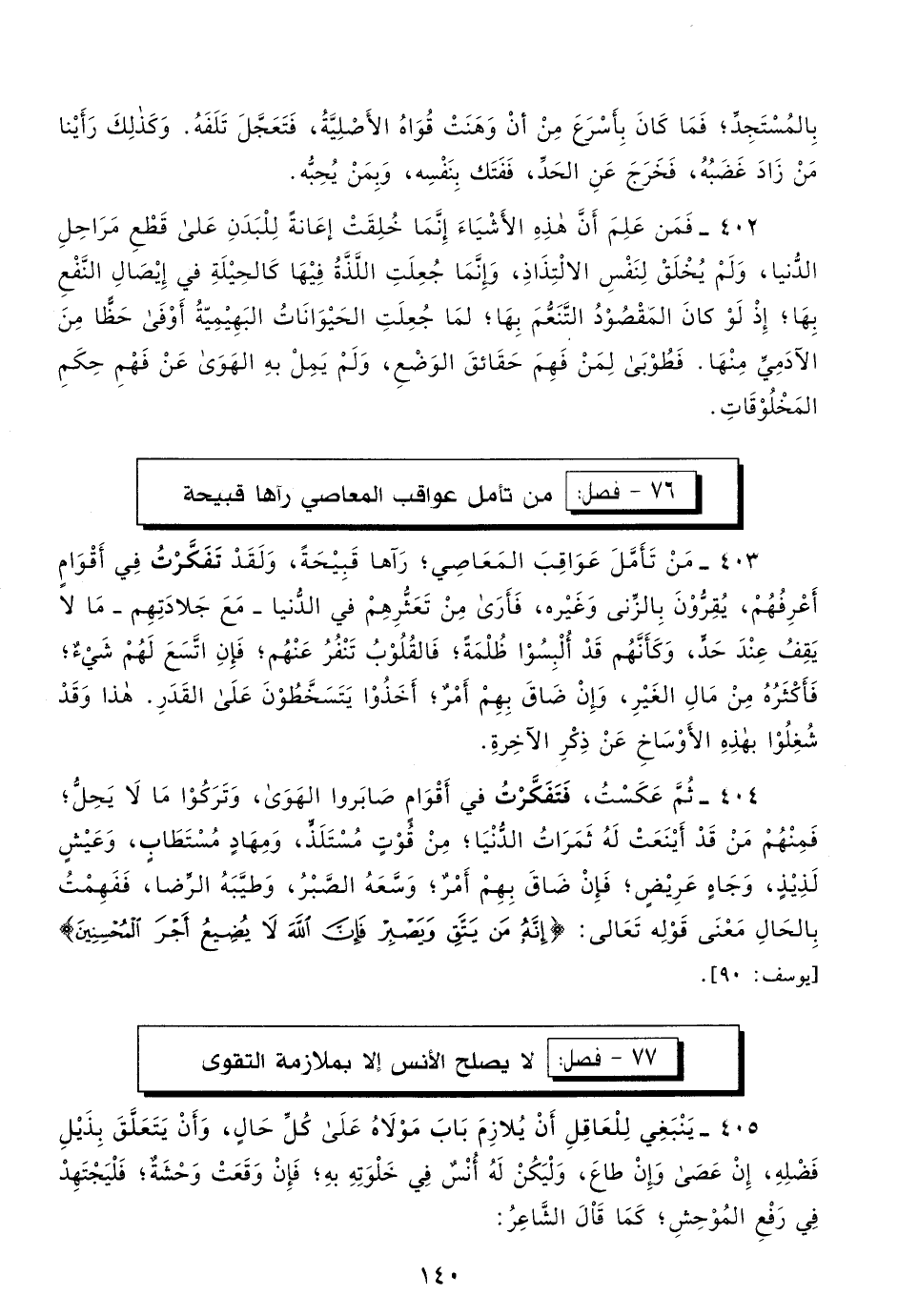 77- فصل: لا يصلح الأنس إلا بملازمة التقوى