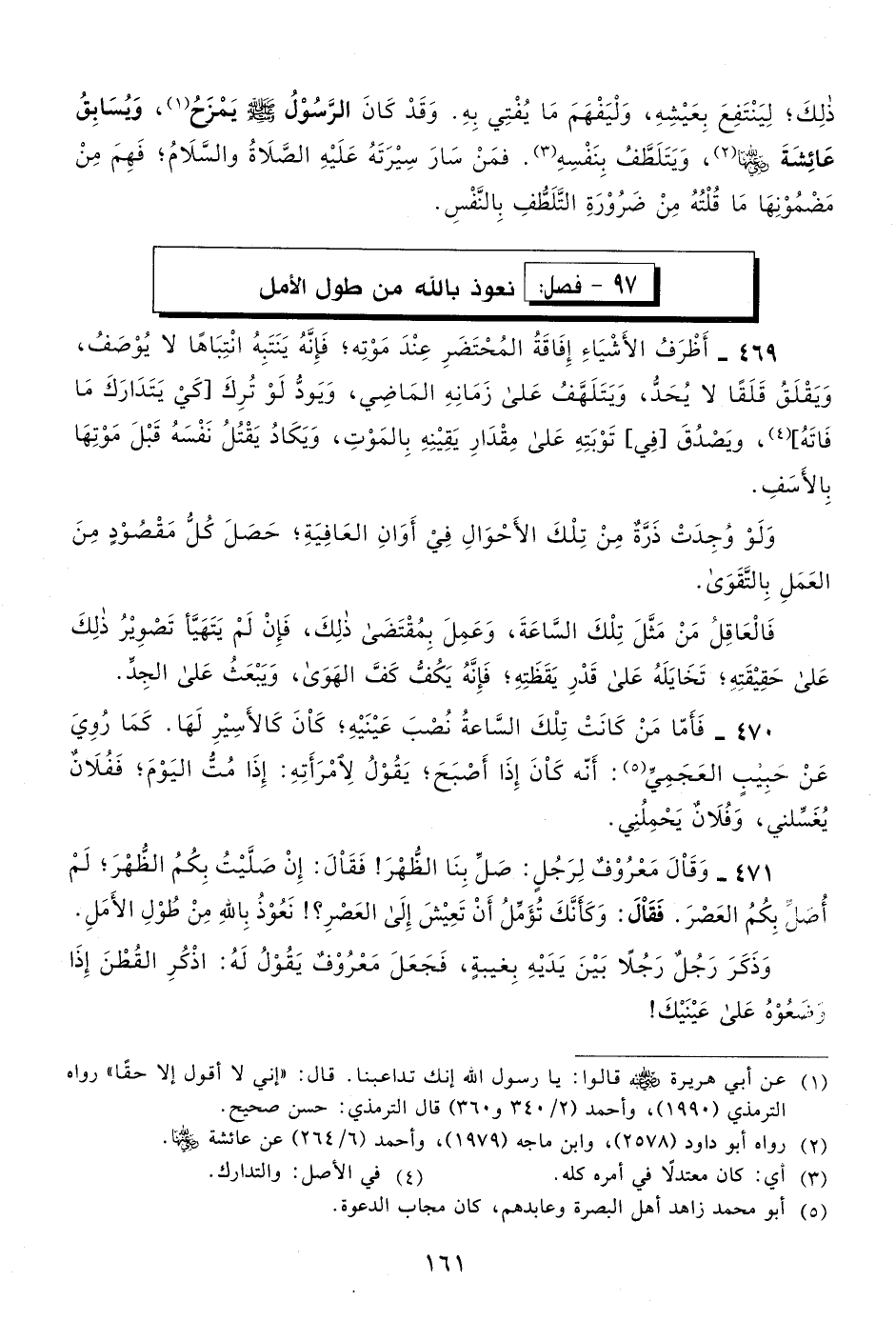 471 وقال معروف لرجل: صل بنا الظهر! فقال: إن صليت بكم الظهر، لم أصل بكم العصر: فقال: وكأنك تؤمل أن تعيش إلى العصر؟! نعوذ بالله من طول الأمل.