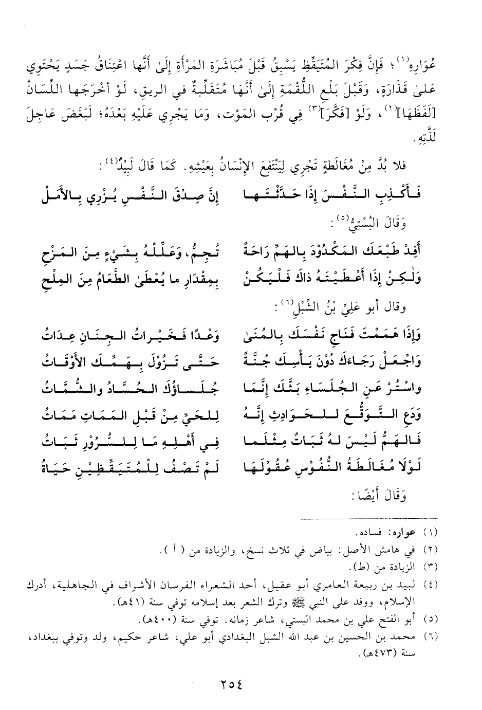 6 محمد بن الحسين بن عبد الله الشبل البغدادي، أبو علي، شاعر حكيم، ولد وتوفي ببغداد، سنة "473هـ".