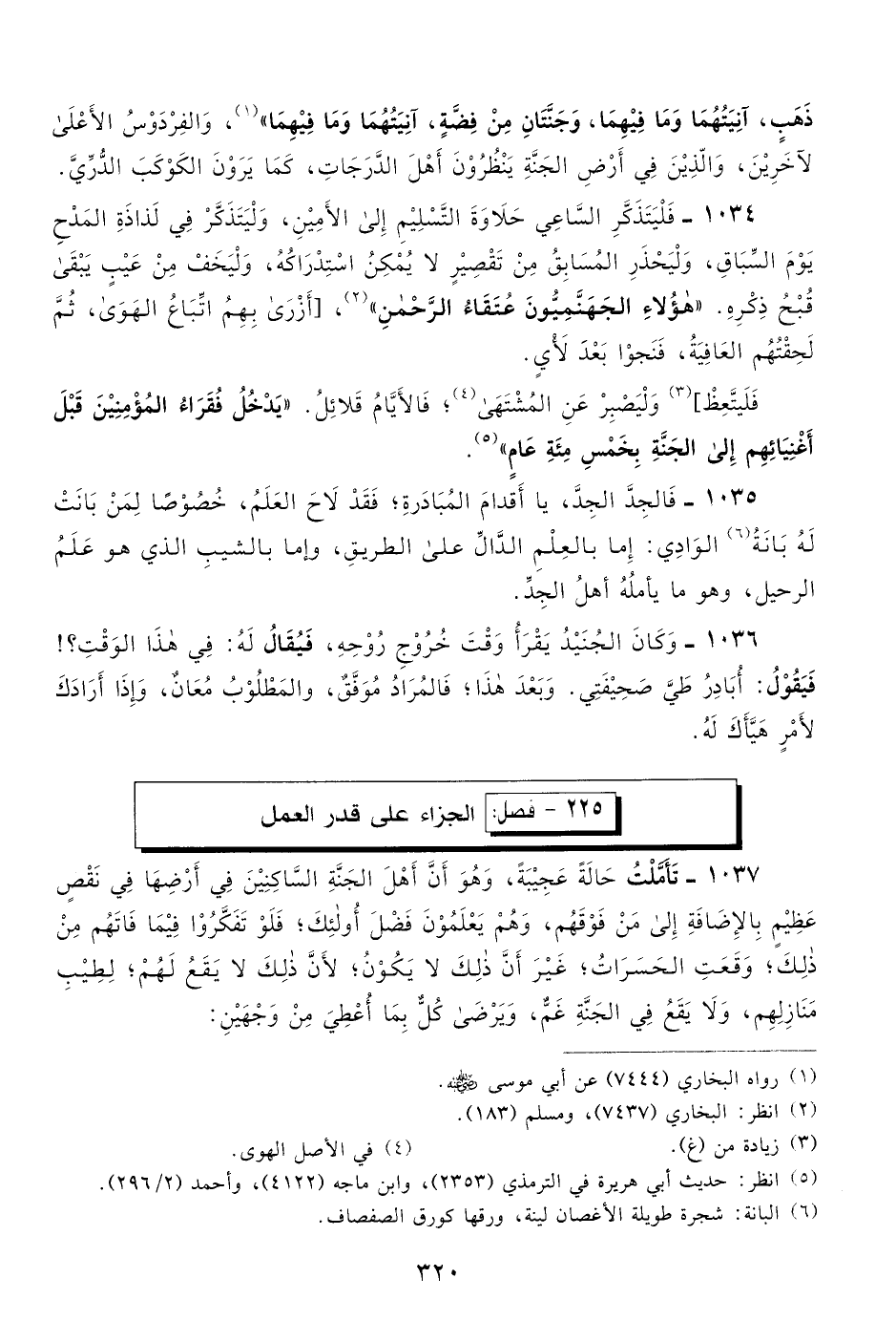 ذهب، آنيتهما وما فيهما، وجنتان من فضة، آنيتهما وما فيهما" 1، والفردوس الأعلى لآخرين، والذين في أرض الجنة ينظرون أهل الدرجات، كما يرون الكوكب الدري.
