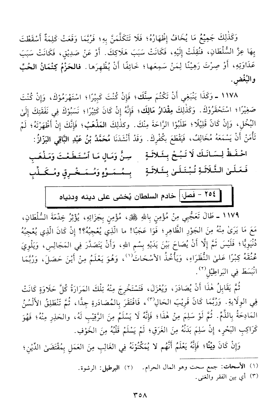 254- فصل: خادم السلطان يخشى على دينه ودنياه
