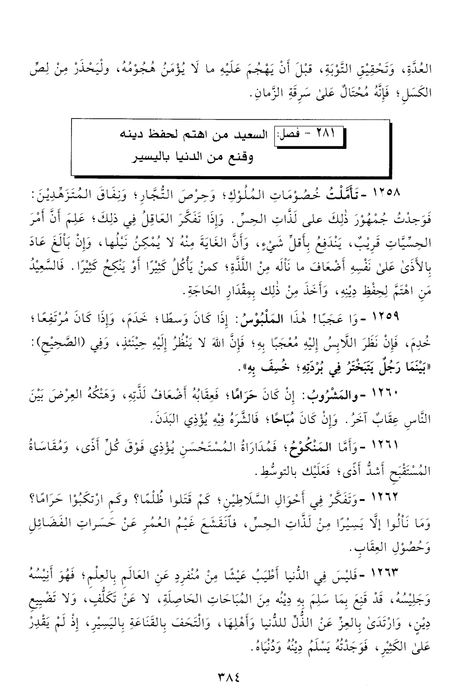 281- فصل: السعيد من اهتم لحفظ دينه وقنع من الدنيا باليسير
