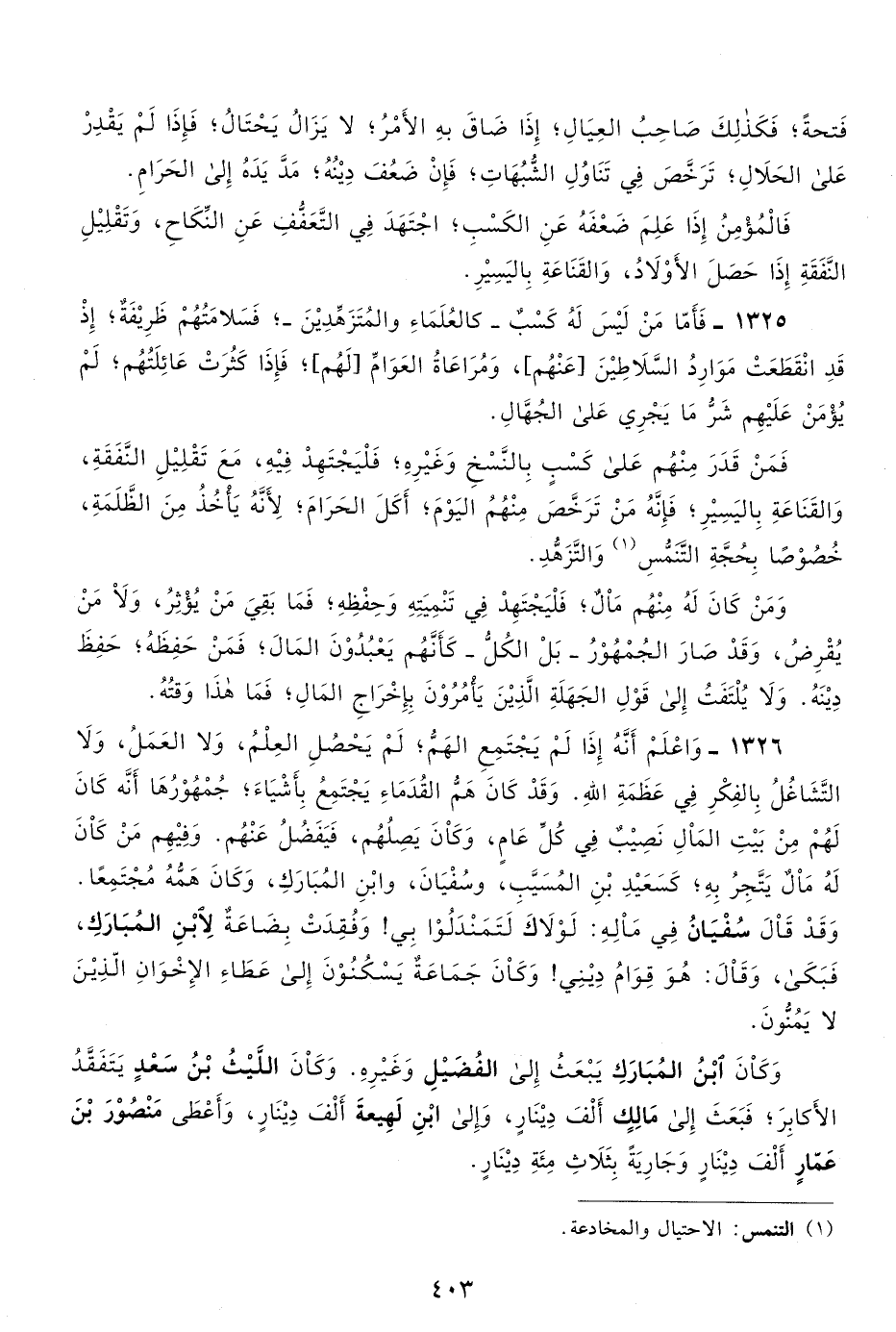 1325- فأما من ليس له كسب -كالعلماء والمتزهدين-، فسلامتهم ظريفة، إذ قد انقطعت موارد السلاطين [عنهم] ومراعاة العوام [لهم] ؛ فإذا كثرت عائلتهم، لم يؤمن عليهم شر ما يجري على الجهال.