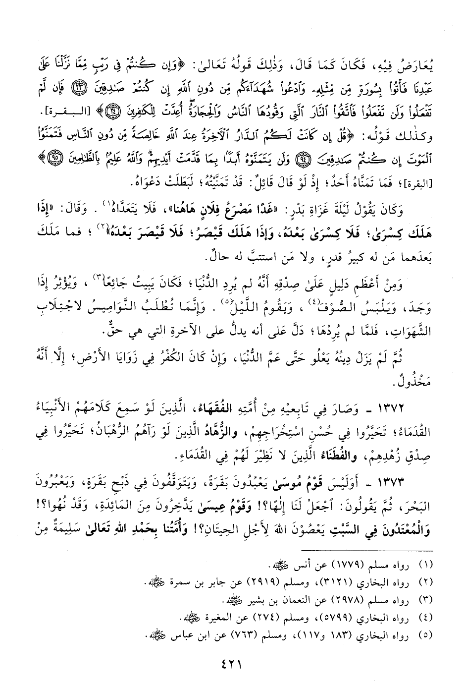 1372- وصار في تابعيه من أمته الفقهاء، الذين لو سمع كلامهم الأنبياء القدماء، تحيروا في حسن استخراجهم، والزهاد الذين لو رآهم الرهبان، تحيروا في صدق زهدهم، والفطناء الذين لا نظير لهم في القدماء.