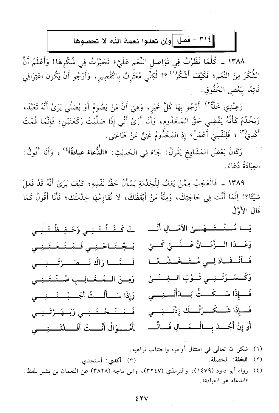 1388- كلما نظرت في تواصل النعم عليَّ، تحيرت في شكرها! وأعلم أن الشكر من النعم، فكيف أشكر1؟! لكني معترف بالتقصير، وأرجو أن يكون اعترافي قائمًا ببعض الحقوق.