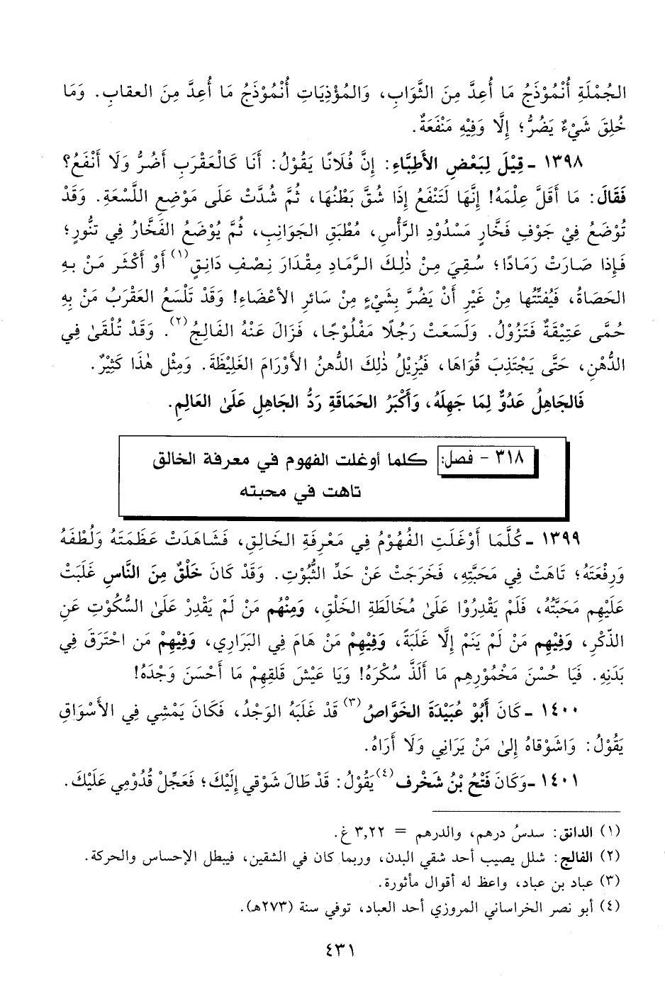 318- فصل: كلما أوغلت الفهوم في معرفة الخالق تاهت في محبته