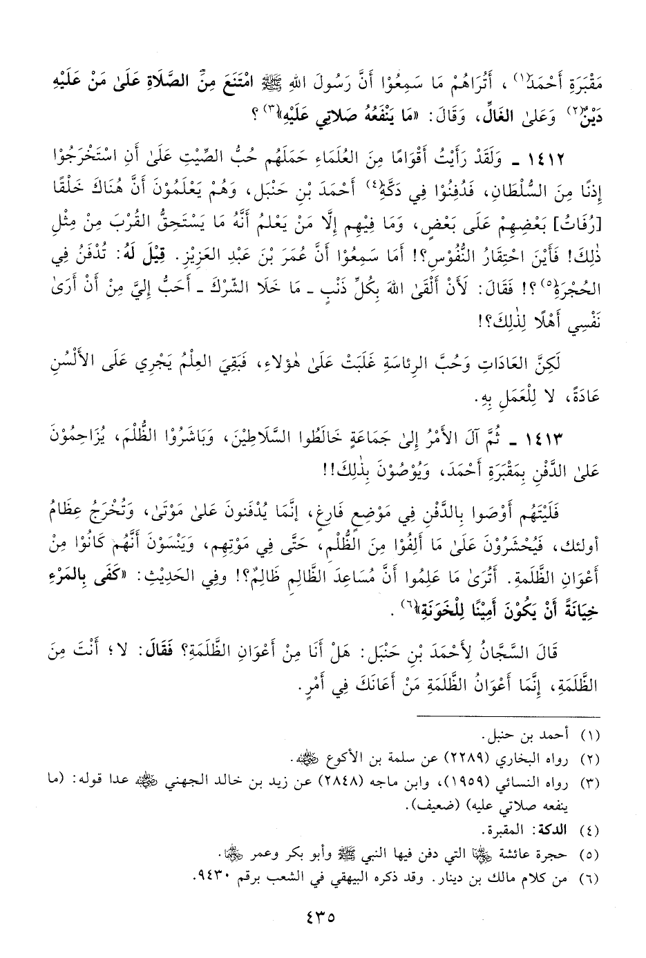 1413- ثم آل الأمر إلى جماعة خالطوا السلاطين، وباشروا الظلم، يزاحمون على الدفن بمقبرة أحمد، ويوصون بذلك!!