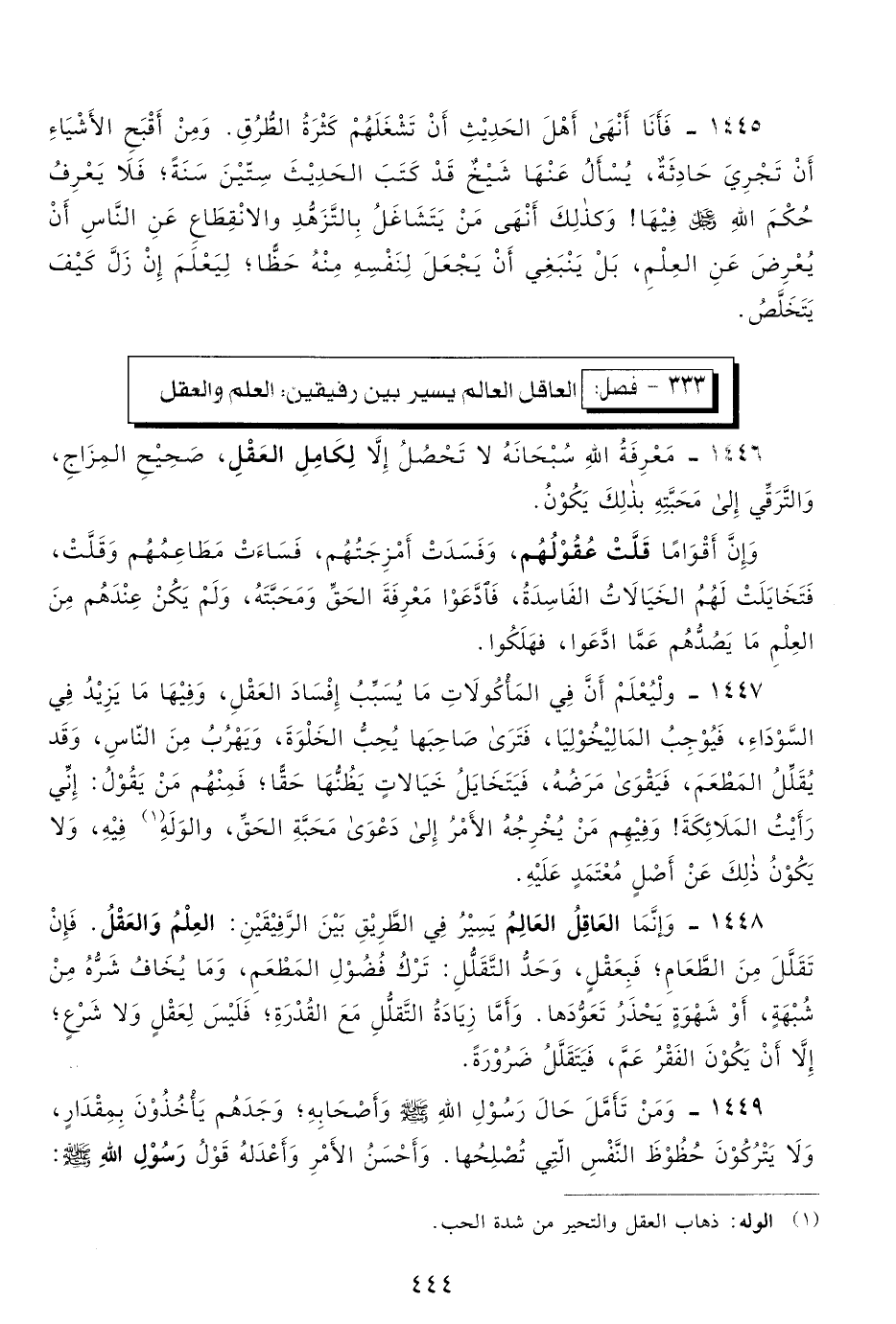 333- فصل: العاقل العالم يسير بين رفيقين: العلم والعقل