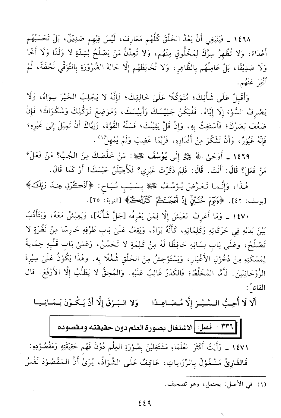 336- فصل: الاشتغال بصورة العلم دون حقيقته ومقصوده