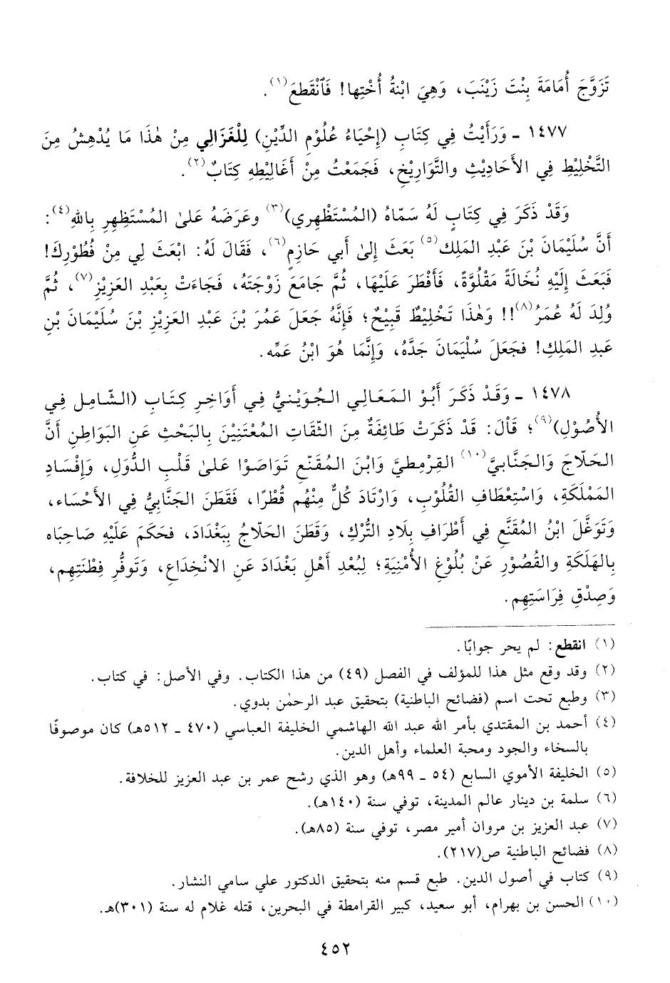 1477- ورأيت في كتاب "إحياء علوم الدين" للغزالي من هذا ما يدهش من التخليط في الأحاديث والتواريخ، فجمعت من أغاليطه كتاب2.