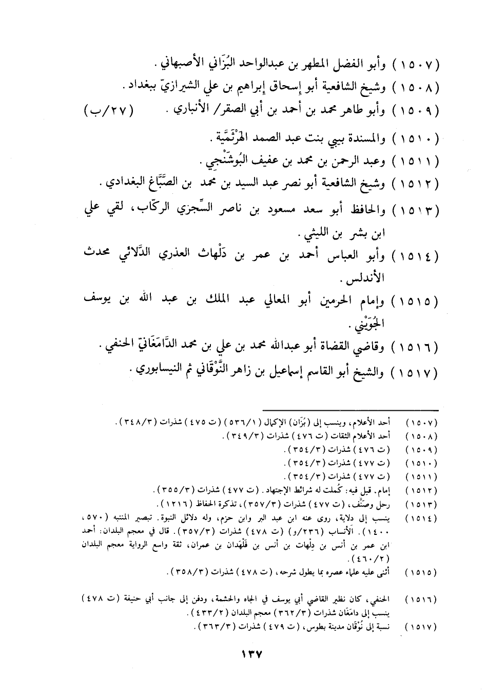 1508 - وَشَيخ الشَّافِعِيَّة أَبُو إِسْحَاق إِبْرَاهِيم بن عَليّ الشِّيرَازِيّ بِبَغْدَاد