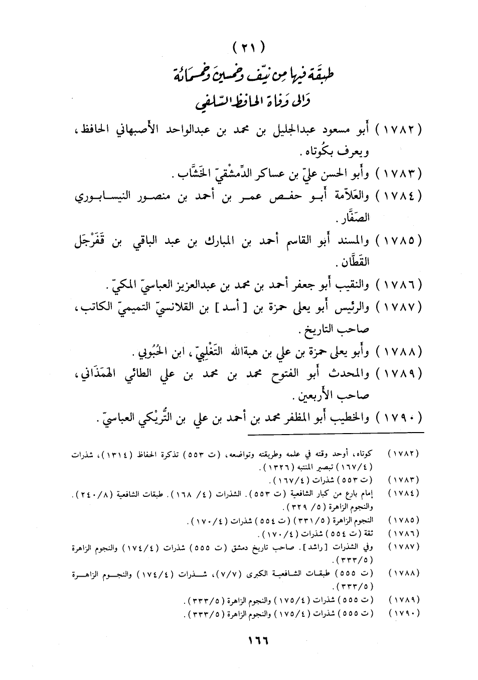 (21) طبقَة فِيهَا من نَيف وَخمسين وَخَمْسمِائة وَإِلَى وَفَاة الْحَافِظ السلَفِي