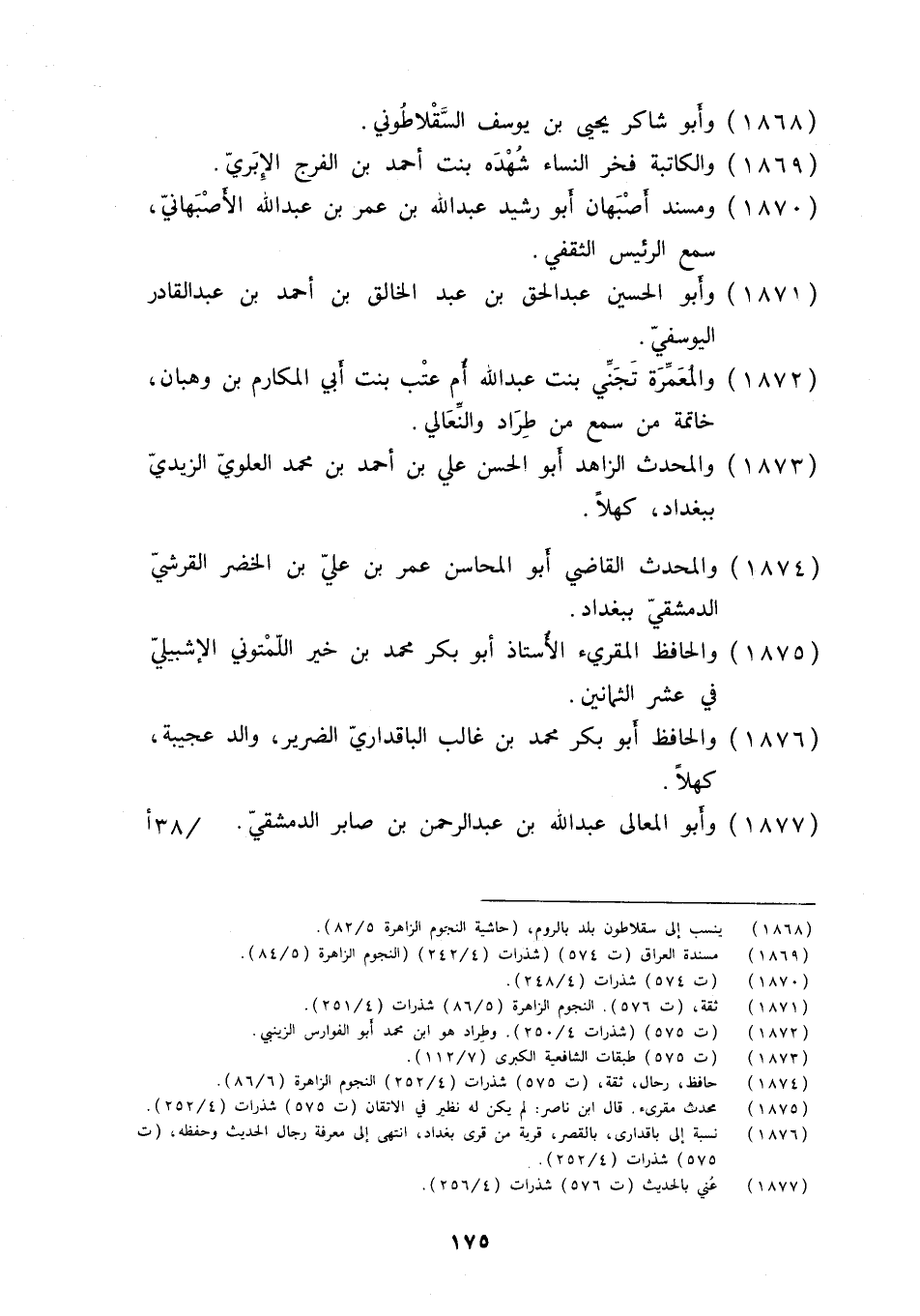 1869 - والكاتبة فَخر النِّسَاء شهده بنت احْمَد بن الْفرج الإبري