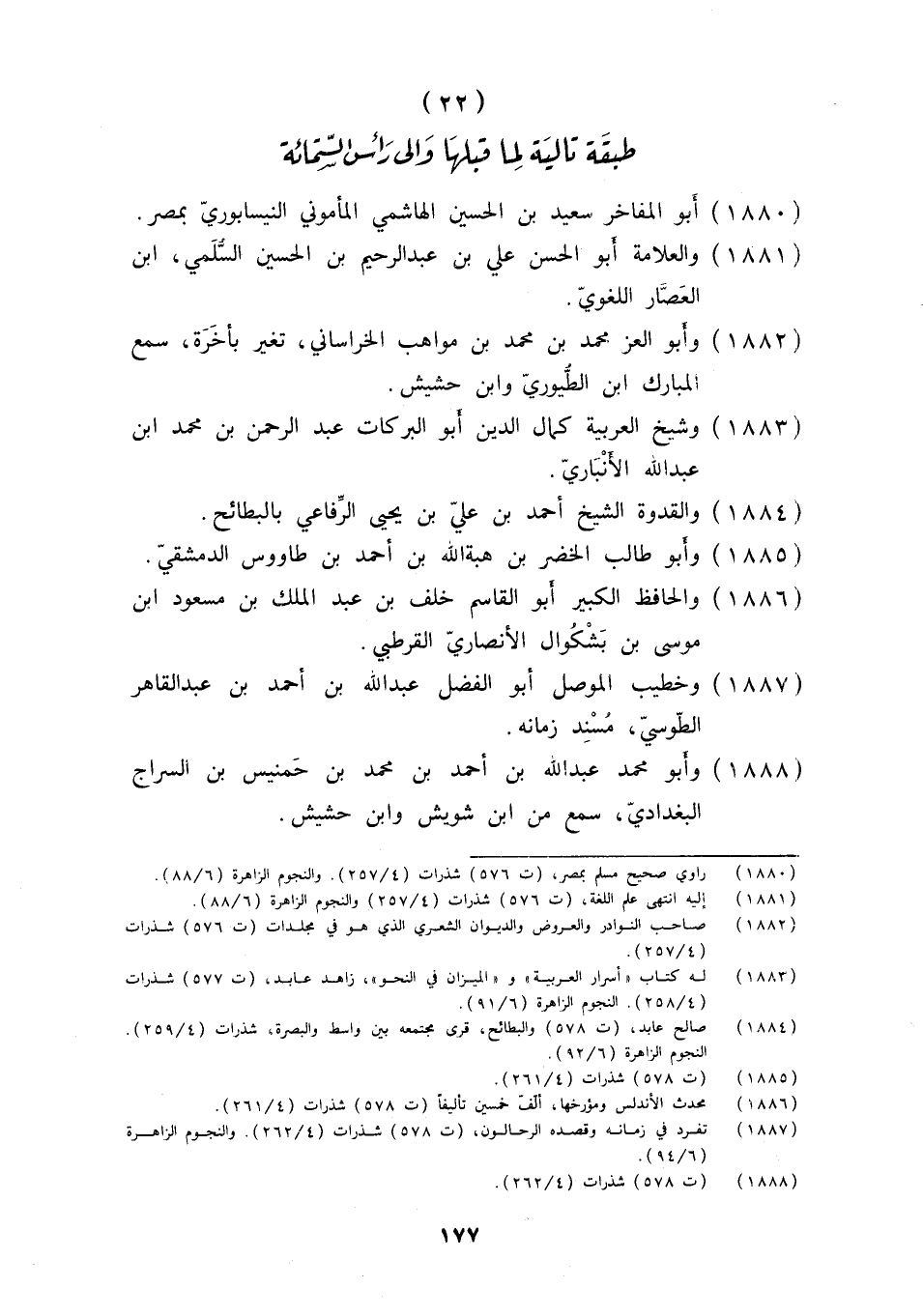 (22) طبقَة تالية لما قبلهَا وَإِلَى رَأس الستمائة