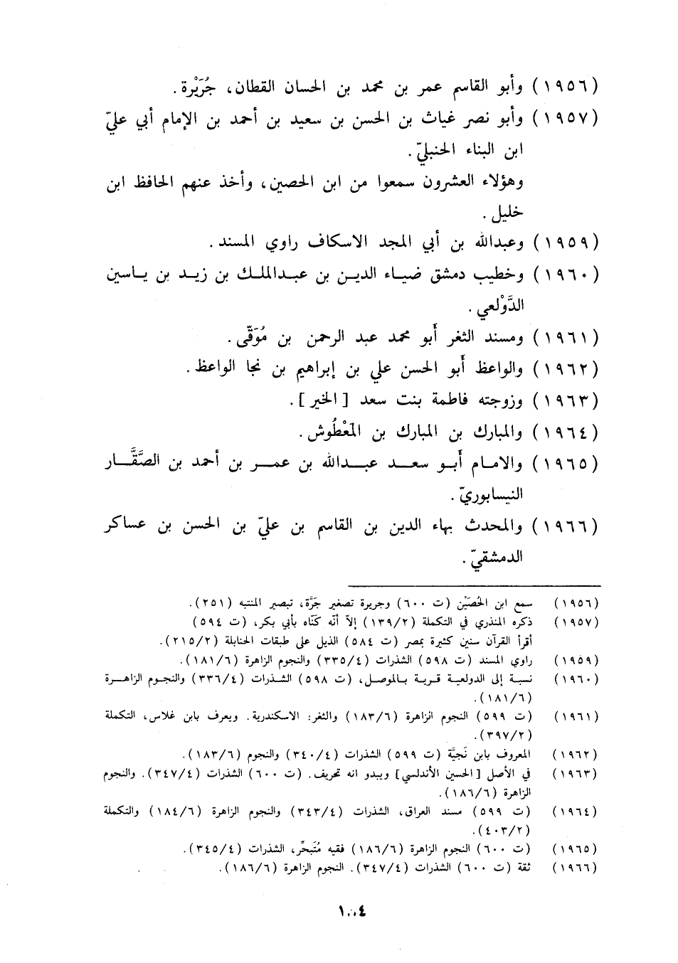 1958 - وَهَؤُلَاء الْعشْرُونَ سمعُوا من ابْن الْحصين وَأخذ عَنْهُم الْحَافِظ ابْن خَلِيل