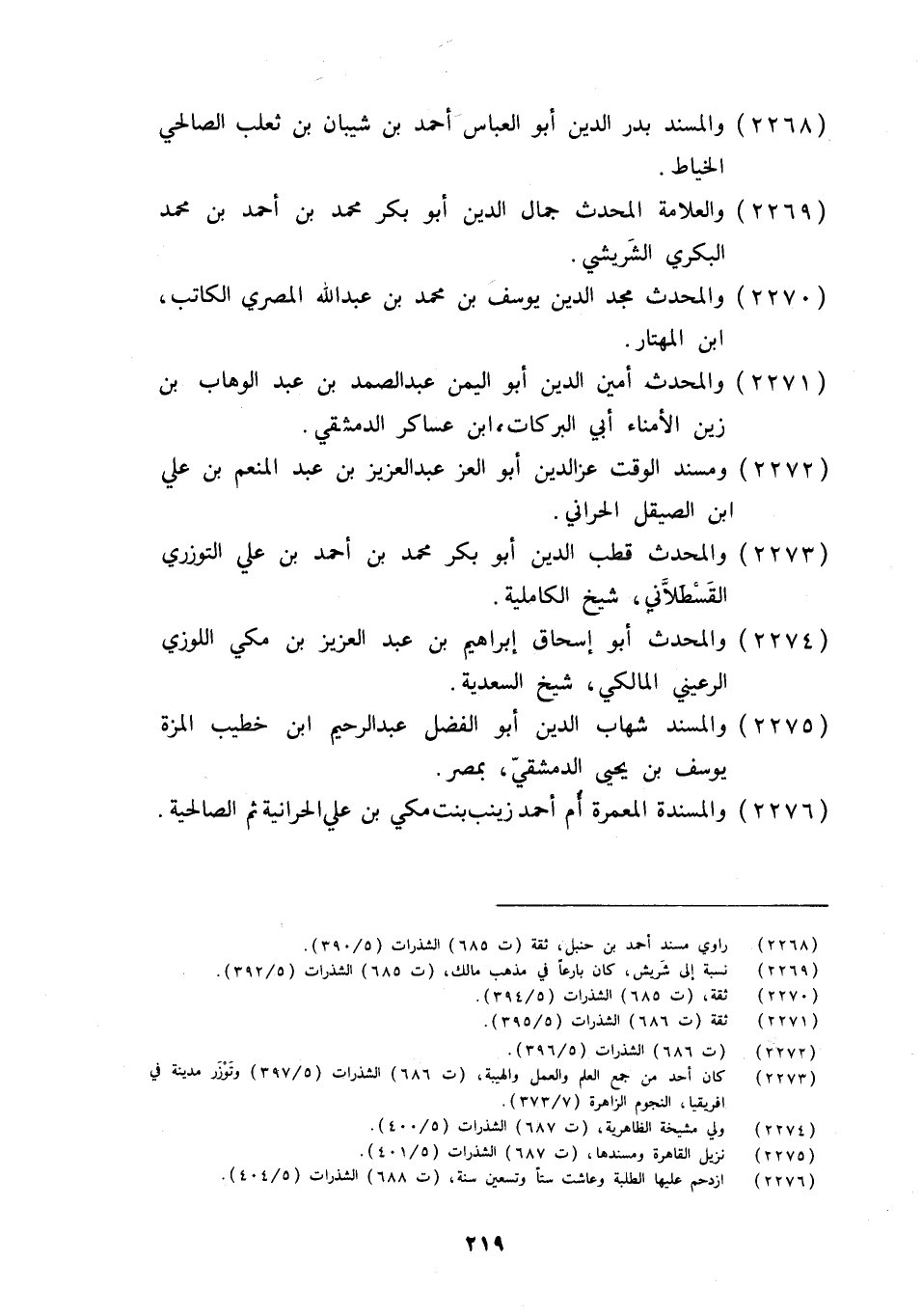 2268 - والمسند بدر الدّين أَبُو الْعَبَّاس احْمَد بن شَيبَان بن ثَعْلَب الصَّالِحِي الْخياط
