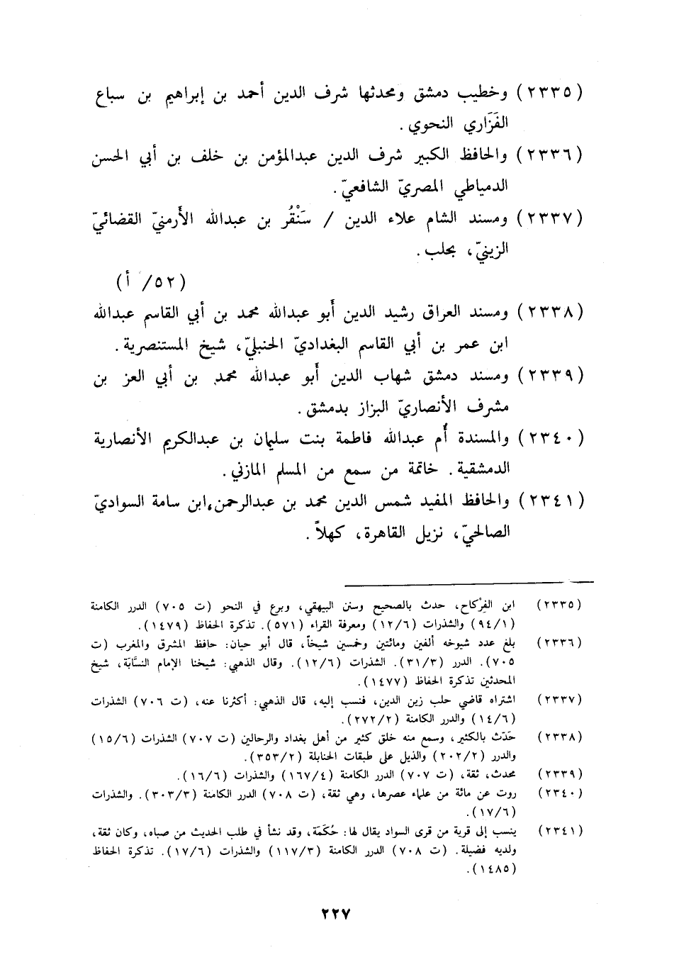2335 - وخطيب دمشق ومحدثها شرف الدّين احْمَد بن ابراهيم بن سِبَاع الْفَزارِيّ النَّحْوِيّ