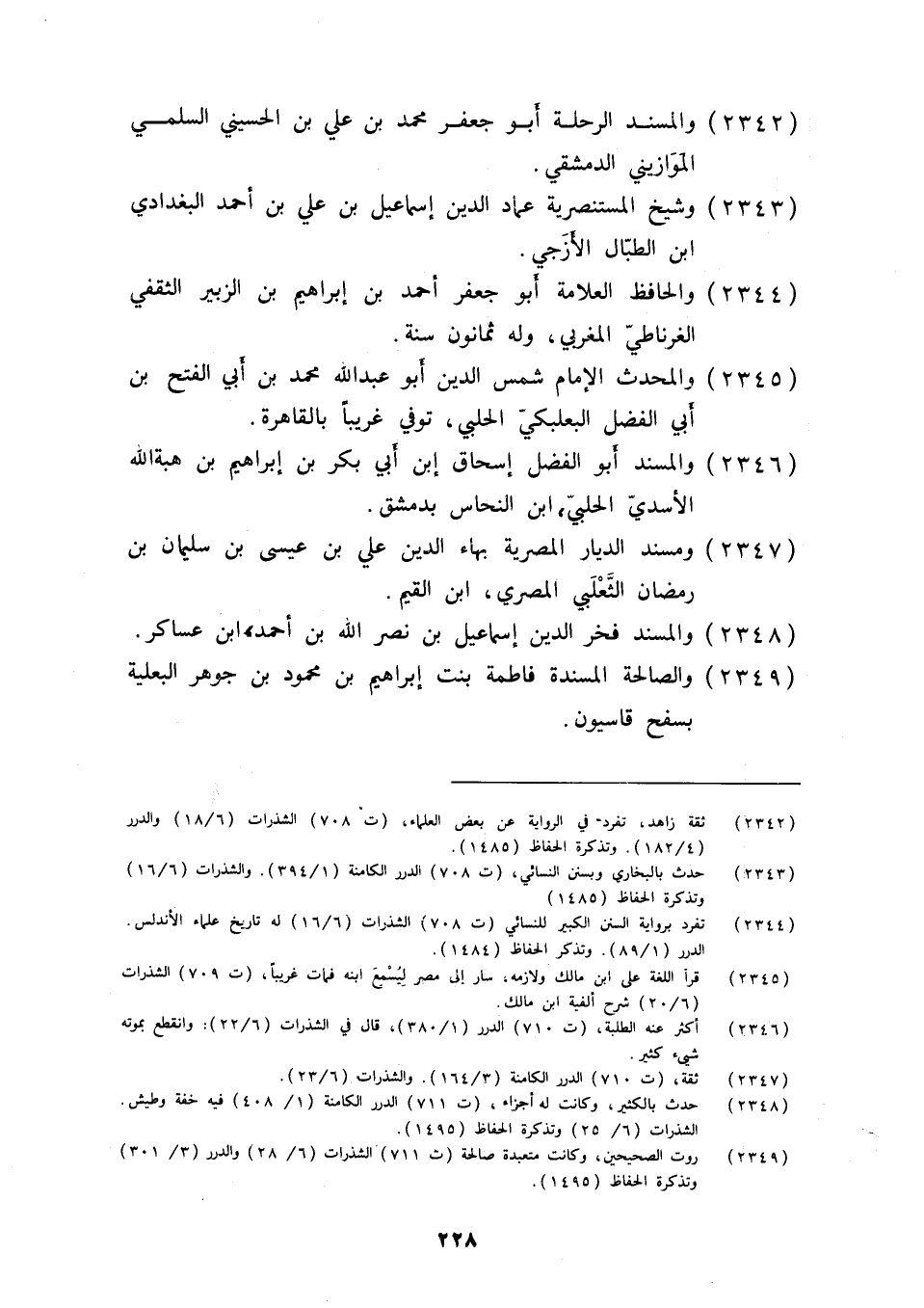 2342 - والمسند الرحلة أَبُو جَعْفَر مُحَمَّد بن عَليّ بن الْحُسَيْنِي السّلمِيّ الموازيني الدِّمَشْقِي