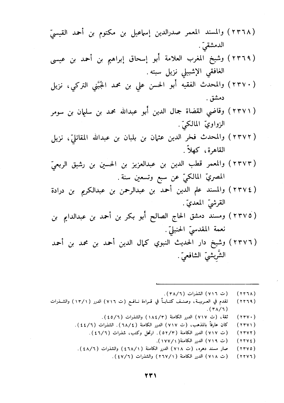 2376 - وَشَيخ دَار الحَدِيث النَّبَوِيّ كَمَال الدّين أَحْمد بن مُحَمَّد بن أَحْمد الشريشي الشَّافِعِي