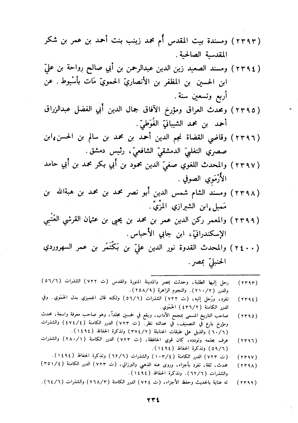 2394 - ومسند الصَّعِيد زين الدّين عبد الرحمن بن أبي صَالح رَوَاحَة بن عَليّ بن الْحُسَيْن بن المظفر بن الْأنْصَارِيّ الْحَمَوِيّ مَاتَ بأسيوط عَن أَربع وَتِسْعين سنة