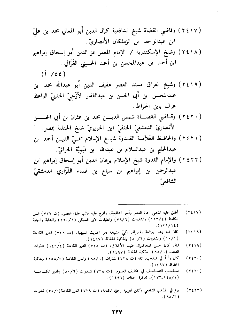 2417 - وقاضي الْقُضَاة شيخ الشَّافِعِيَّة كَمَال الدّين أَبُو الْمَعَالِي مُحَمَّد بن عَليّ ابْن عبد الواحد بن الزملكان الْأنْصَارِيّ