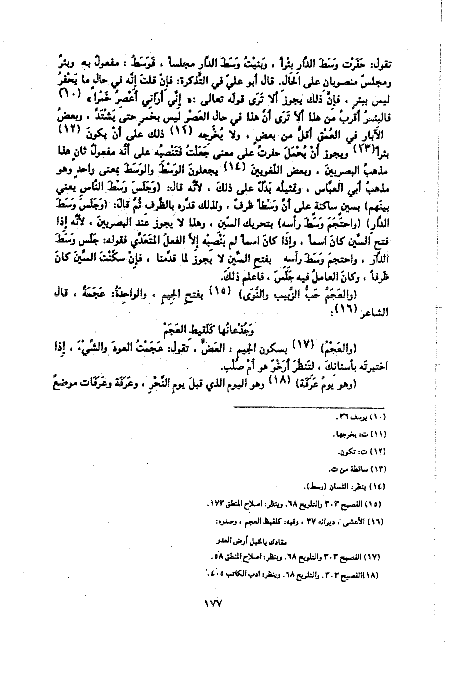 فالبئر أقرب من هذا، ألا ترى أن هذا في حال العصر ليس بخمر حتى يشتد، وبعض الآبار في العمق أقل من بعض، ولا يخرجه ذلك على أن يكون بئر ويجوز أن يحمل حفرت على معنى جعلت فتنصبه على أنه مفعول ثان هذا مذهب البصريين، وبعض اللغويين يجعلون الوسط والوسط بمعنى واحد وهو مذهب أبي العباس، وتمثيله يدل على ذلك؛ لأنه قال: (وجلس وسط الناس يعني بينهم) بسين ساكنة على أن وسطًا ظرف، ولذلك قدره بالظرف ثم قال: (وجلس وسط الدار) (واحتجم وسط رأسه) بتحريك السين، وهذا لا يجوز عند البصريين؛ لأنه إذا فتح السين كان اسمًا، وإذا كان اسمًا لم ينصبه إلا الفعل المتعدي فقوله: جلس وسط الدار، واحتجم وسط رأسه بفتح السين لا يجوز لما قدمنا، فإن سكنت السين كان ظرفًا، وكان العامل فيه جلس، فاعلم ذلك.