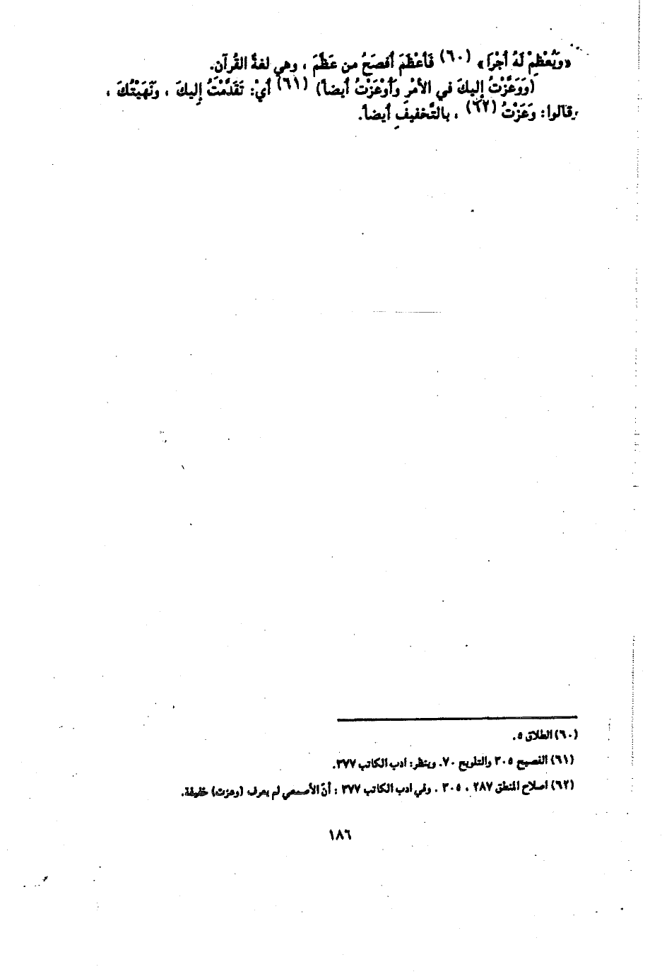 (ووعزت إليك في الأمر وأوعزت أيضًا) أي: تقدمت إليك، ونهيتك، وقالوا: وعزت، بالتخفيف أيضًا.
