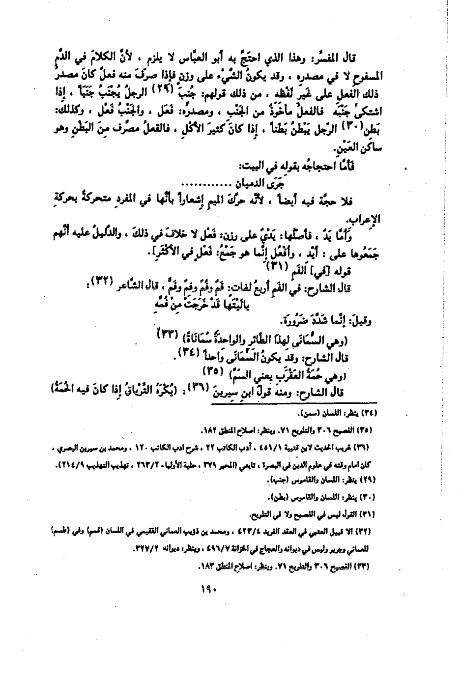 قال المفسر: وهذا الذي احتج به أبو العباس لا يلزم؛ لأن الكلام في الدم المسفوح لا في مصدره، وقد يكون الشيء على وزن فإذا صرف منه فعل كان مصدر ذلك الفعل على غير لفظه، من ذلك قولهم: جنب الرجل يجنب جنبًا، إذا اشتكى جنبه فالفعل مأخوذ من الجنب، ومصدره: فعل، والجنب فعل، وكذلك: بطن الرجل يبطن بطنًا، إذا كان كثير الأكل، فالفعل مصرف من البطن وهو ساكن العين.