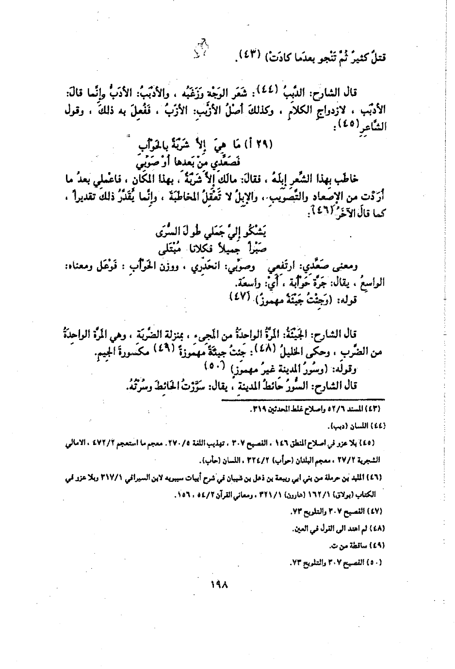 قال الشارح: الدبب: شعر الوجه وزغبه، والأدبب: الأدب، وإنما قال: الأدبب لازدواج الكلام، وكذلك أصل الأزبب: الأزب، ففعل به ذلك، وقول الشاعر: